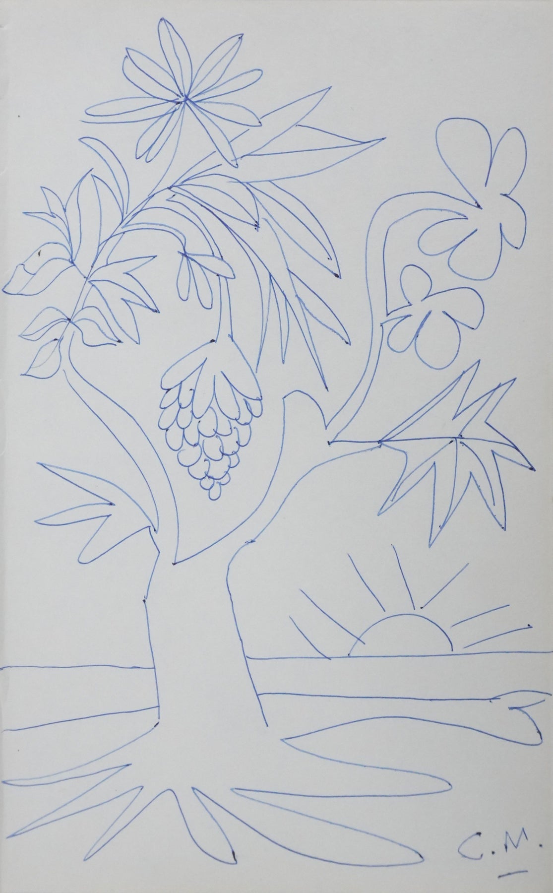 PROVENANCE : Ce dessin provient de la collection personnelle de Pierre Lhoste. Journaliste de radio, Pierre Lhoste (1913-1984) demanda aux personnalités qu’il recevait de réaliser un autographe accompagné d'un dessin d’arbre, constituant ainsi un témoignage unique de ses entretiens.