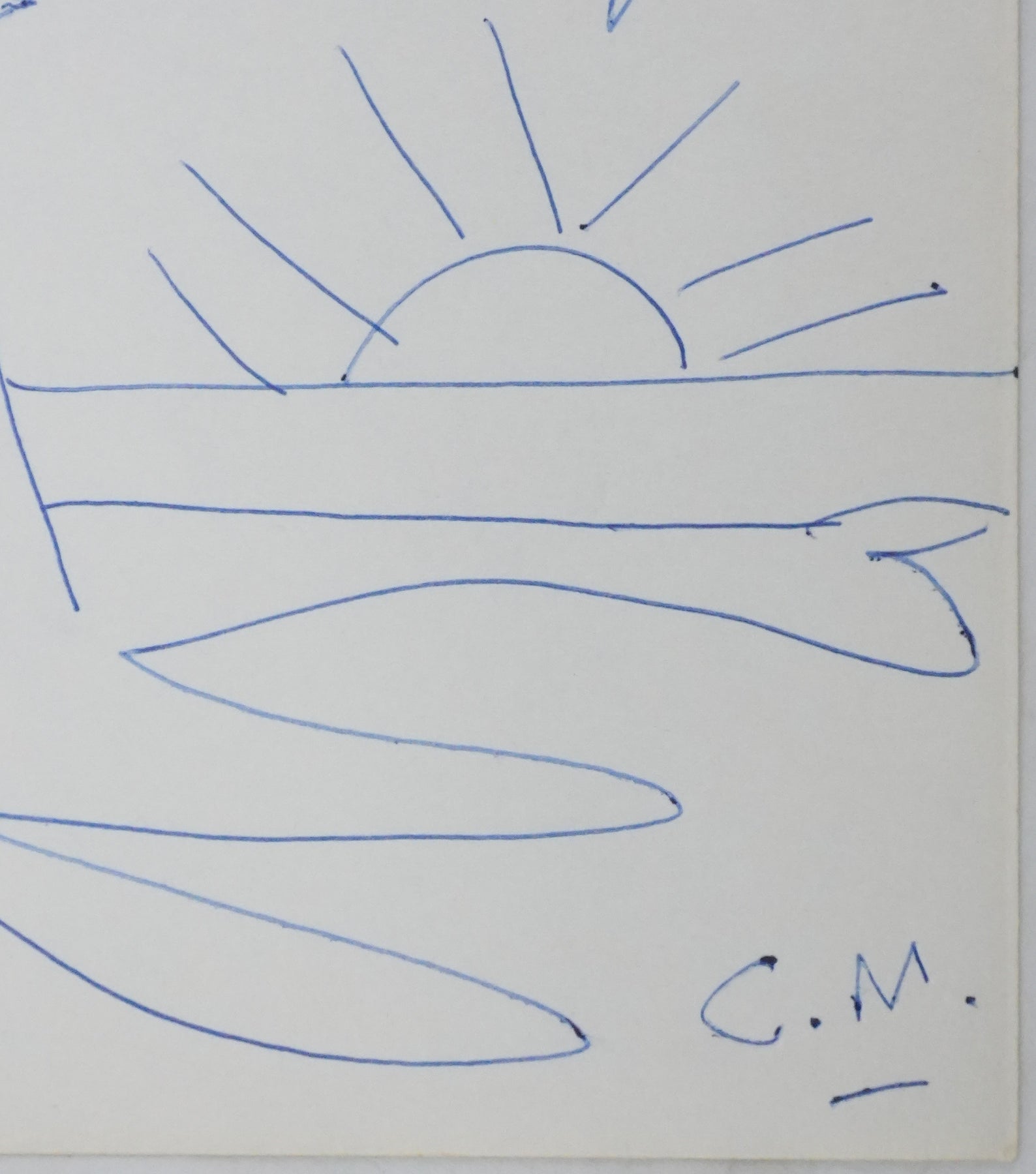 Christian MEGRET : Arbre au coucher de soleil, Autographe et dessin original signé