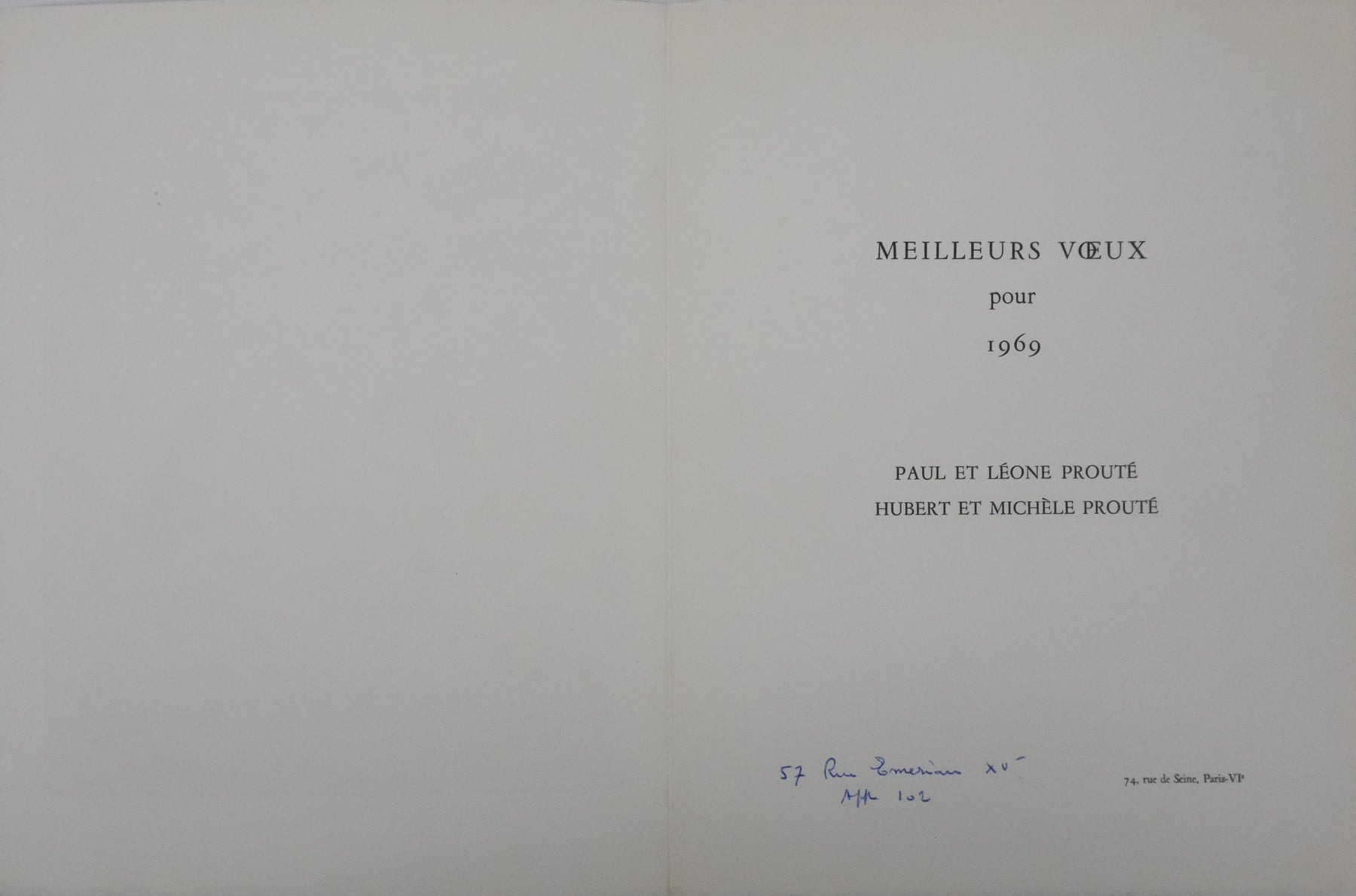 INFORMATION : Texte au dos. Carte de vœux éditée par la galerie Paul Prouté pour l'année 1969.