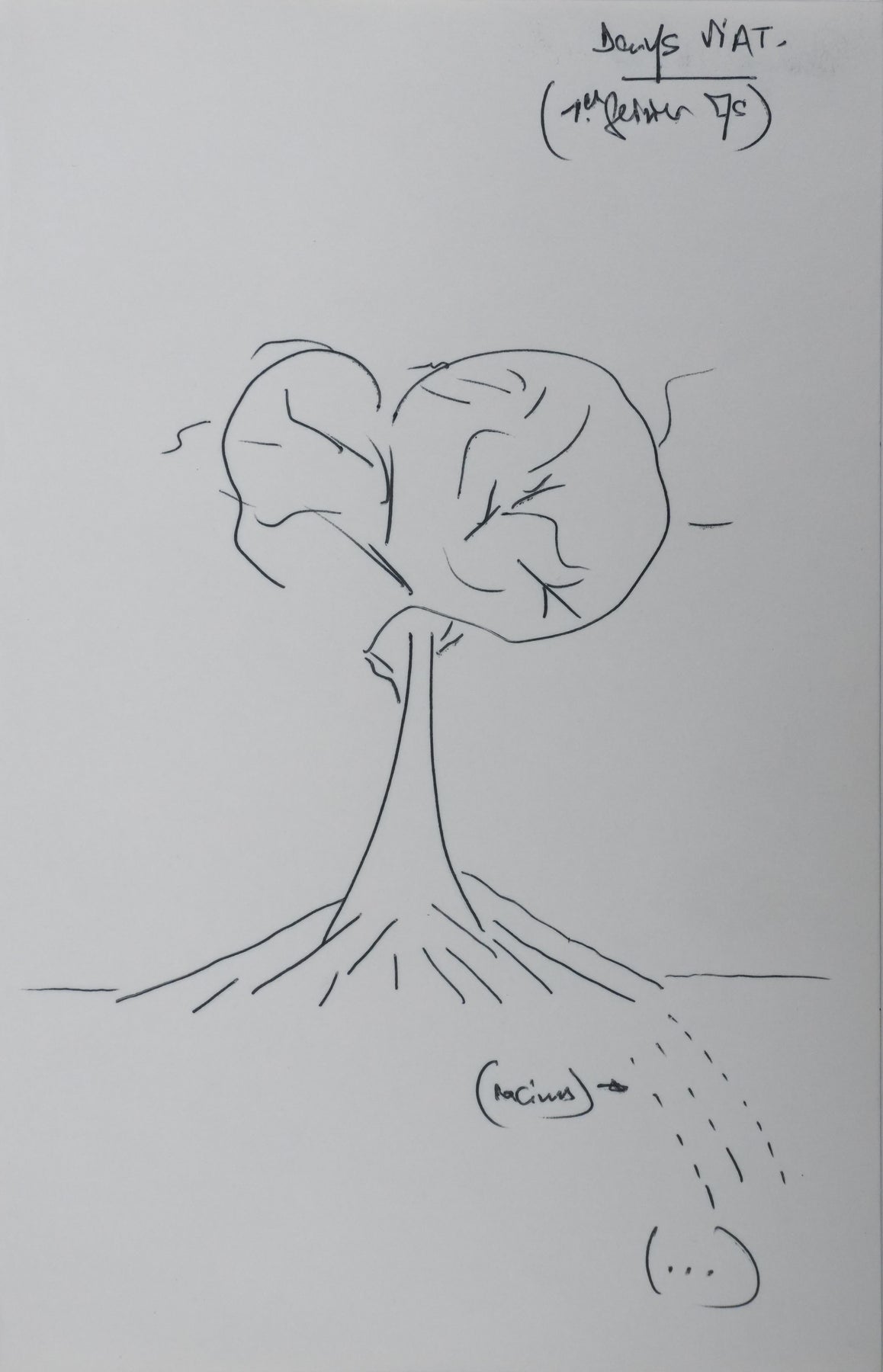 PROVENANCE : Ce dessin provient de la collection personnelle de Pierre Lhoste. Journaliste de radio, Pierre Lhoste (1913-1984) demanda aux personnalités qu’il recevait de réaliser un autographe accompagné d'un dessin d’arbre, constituant ainsi un témoignage unique de ses entretiens.