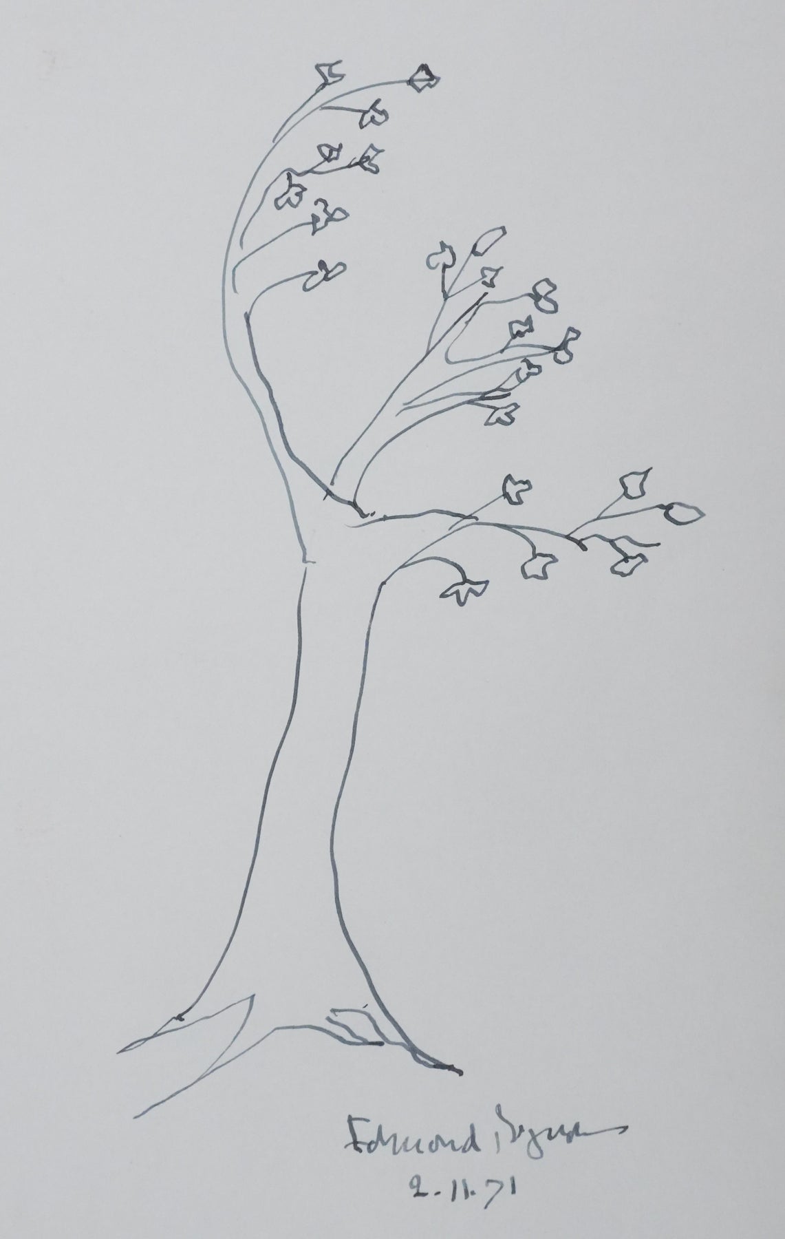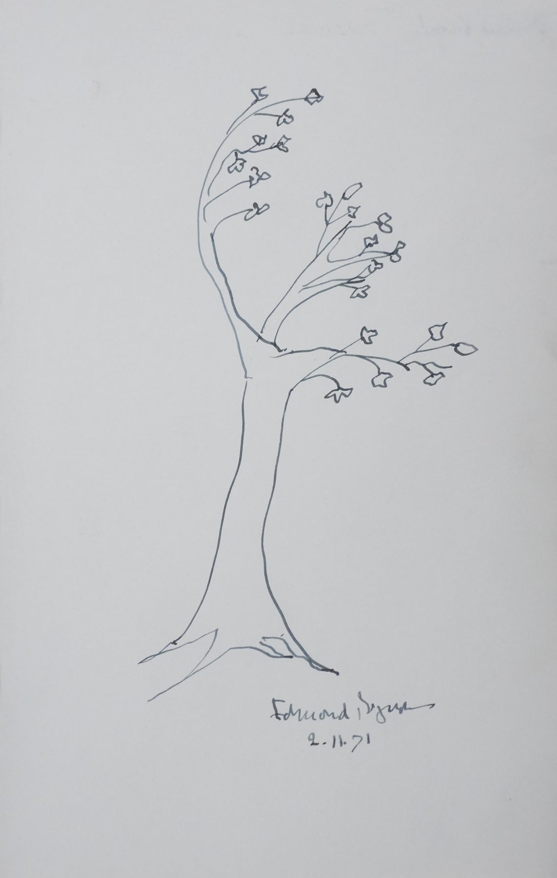 PROVENANCE : Ce dessin provient de la collection personnelle de Pierre Lhoste. Journaliste de radio, Pierre Lhoste (1913-1984) demanda aux personnalités qu’il recevait de réaliser un autographe accompagné d'un dessin d’arbre, constituant ainsi un témoignage unique de ses entretiens.