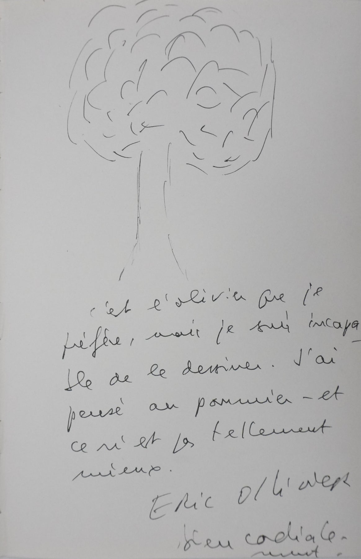 PROVENANCE : Ce dessin provient de la collection personnelle de Pierre Lhoste. Journaliste de radio, Pierre Lhoste (1913-1984) demanda aux personnalités qu’il recevait de réaliser un autographe accompagné d'un dessin d’arbre, constituant ainsi un témoignage unique de ses entretiens.