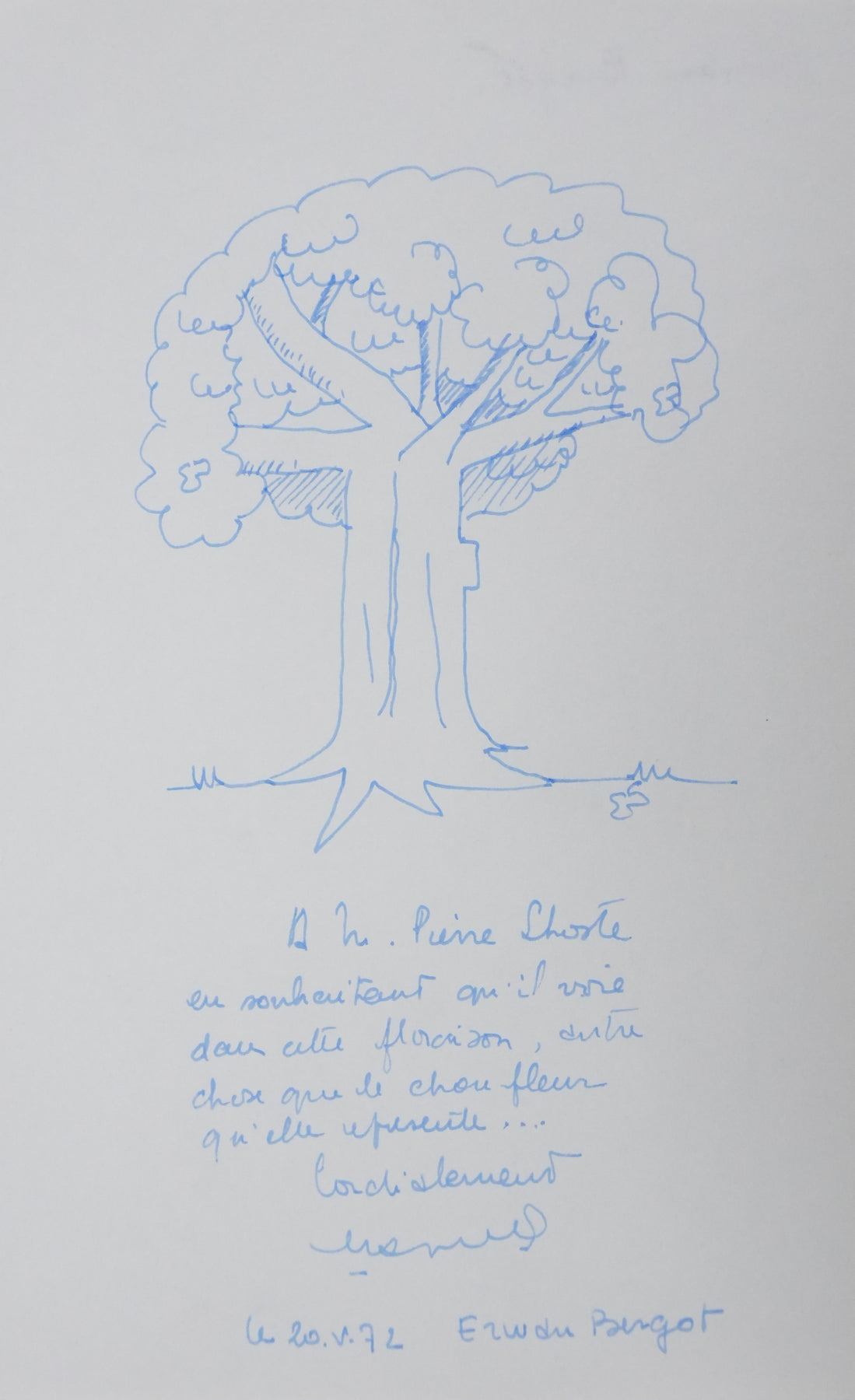 PROVENANCE : Ce dessin provient de la collection personnelle de Pierre Lhoste. Journaliste de radio, Pierre Lhoste (1913-1984) demanda aux personnalités qu’il recevait de réaliser un autographe accompagné d'un dessin d’arbre, constituant ainsi un témoignage unique de ses entretiens.