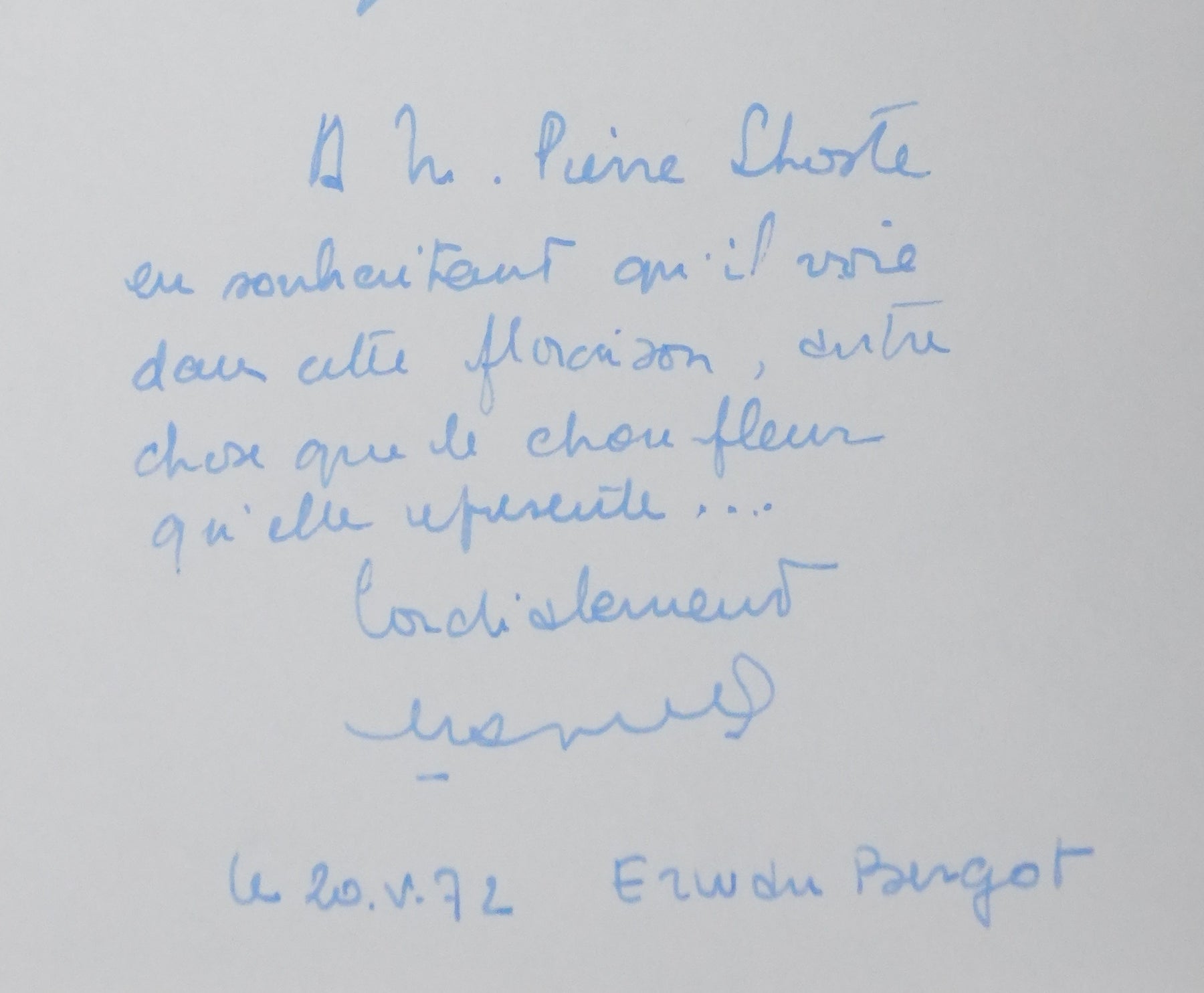 Erwan BERGOT : Le bois bleu, Autographe et dessin original signé