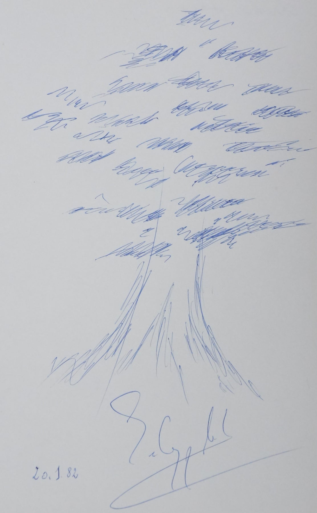 PROVENANCE : Ce dessin provient de la collection personnelle de Pierre Lhoste. Journaliste de radio, Pierre Lhoste (1913-1984) demanda aux personnalités qu’il recevait de réaliser un autographe accompagné d'un dessin d’arbre, constituant ainsi un témoignage unique de ses entretiens.
