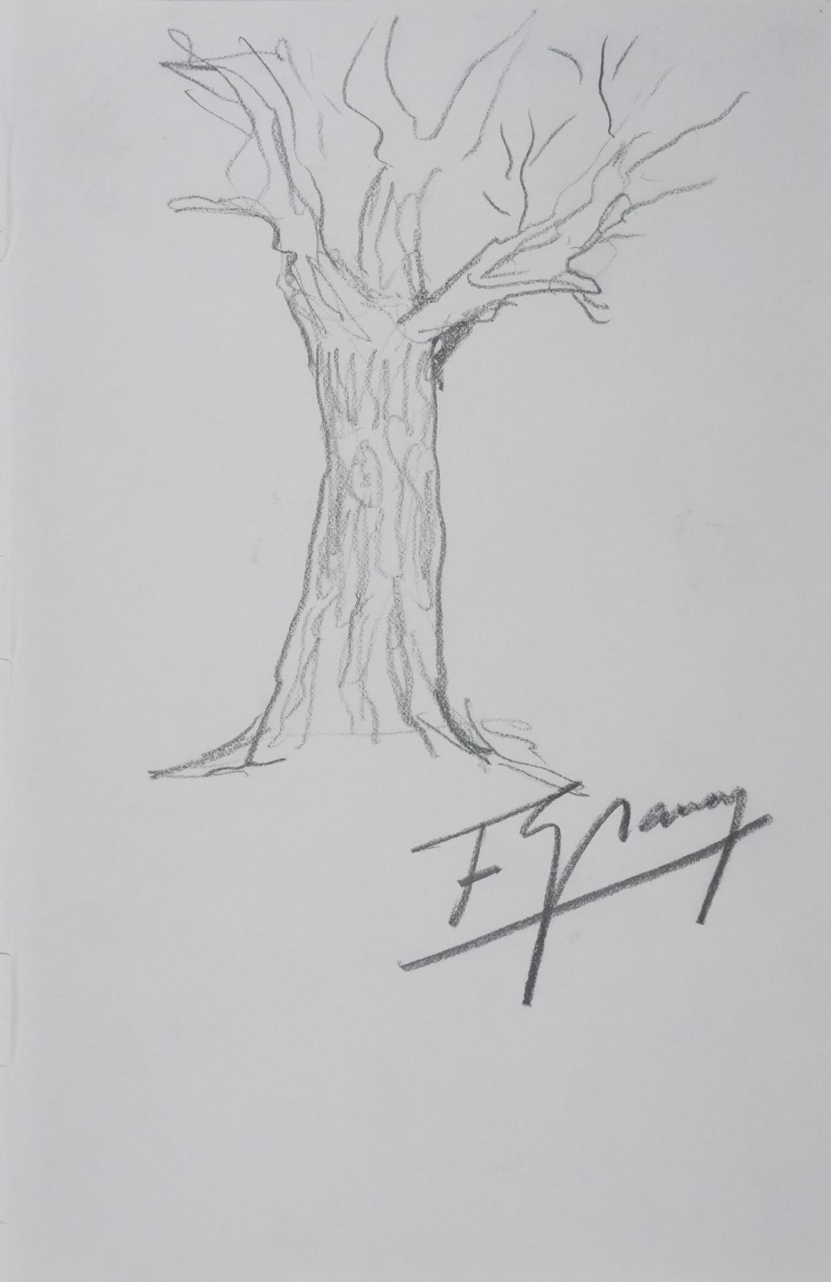 PROVENANCE : Ce dessin provient de la collection personnelle de Pierre Lhoste. Journaliste de radio, Pierre Lhoste (1913-1984) demanda aux personnalités qu’il recevait de réaliser un autographe accompagné d'un dessin d’arbre, constituant ainsi un témoignage unique de ses entretiens.