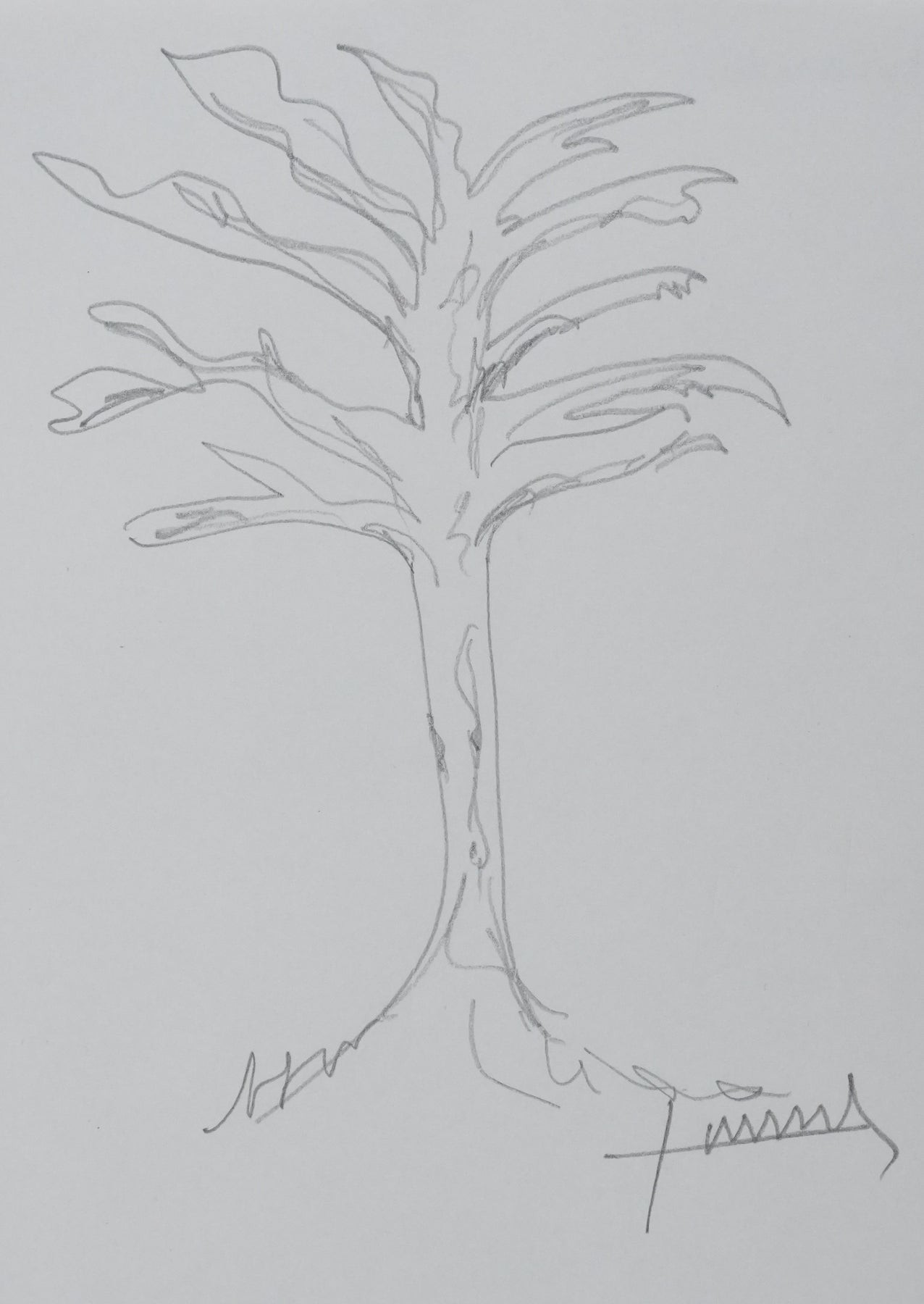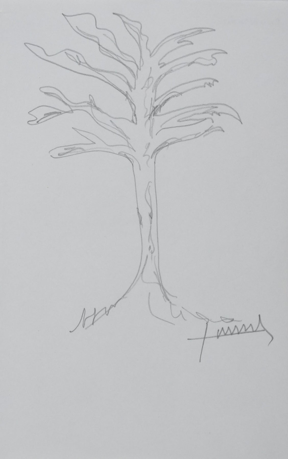 PROVENANCE : Ce dessin provient de la collection personnelle de Pierre Lhoste. Journaliste de radio, Pierre Lhoste (1913-1984) demanda aux personnalités qu’il recevait de réaliser un autographe accompagné d'un dessin d’arbre, constituant ainsi un témoignage unique de ses entretiens.