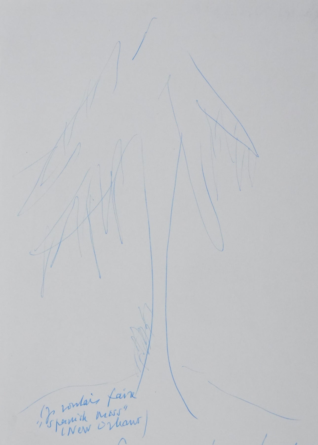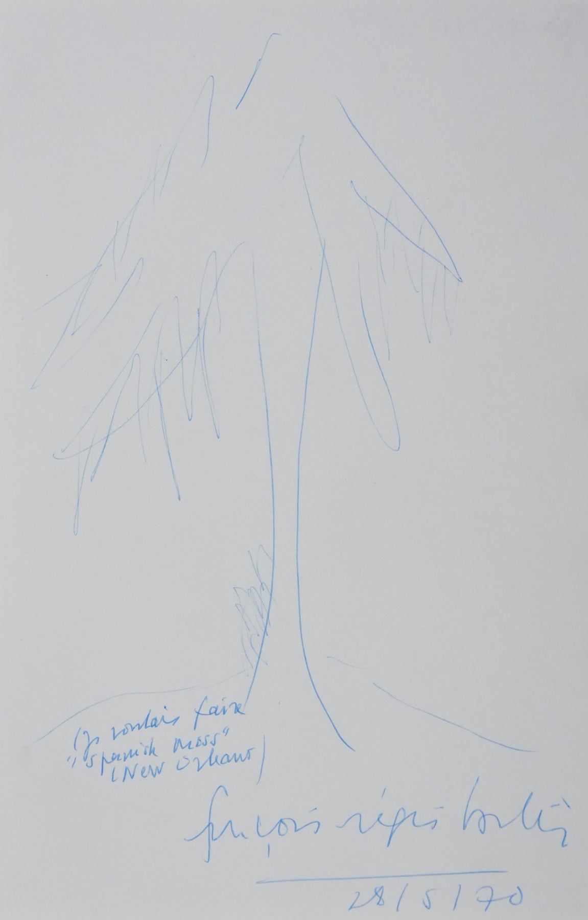 PROVENANCE : Ce dessin provient de la collection personnelle de Pierre Lhoste. Journaliste de radio, Pierre Lhoste (1913-1984) demanda aux personnalités qu’il recevait de réaliser un autographe accompagné d'un dessin d’arbre, constituant ainsi un témoignage unique de ses entretiens.
