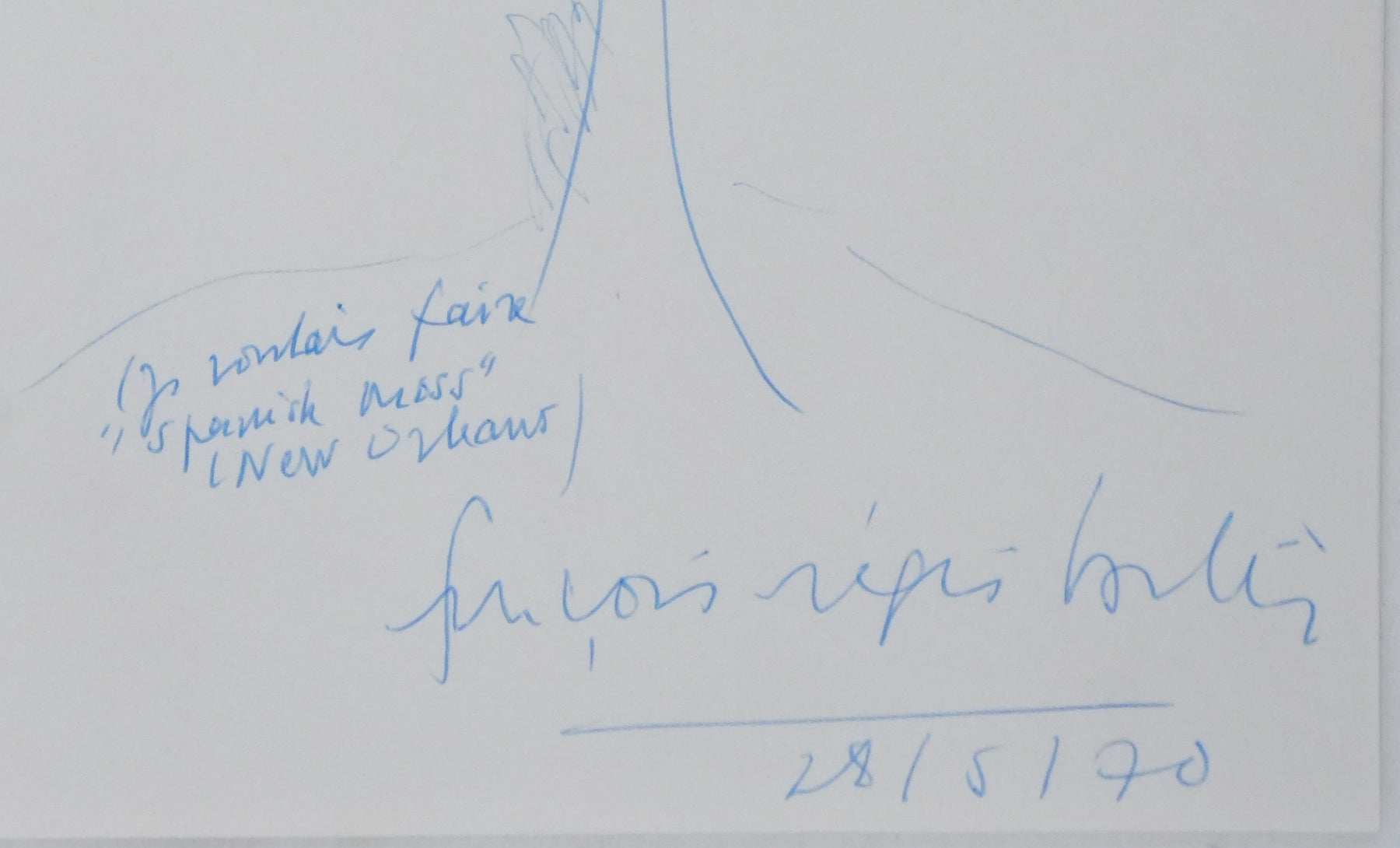 François REGIS BASTIDE : Arbre en désordre, Autographe et dessin original signé