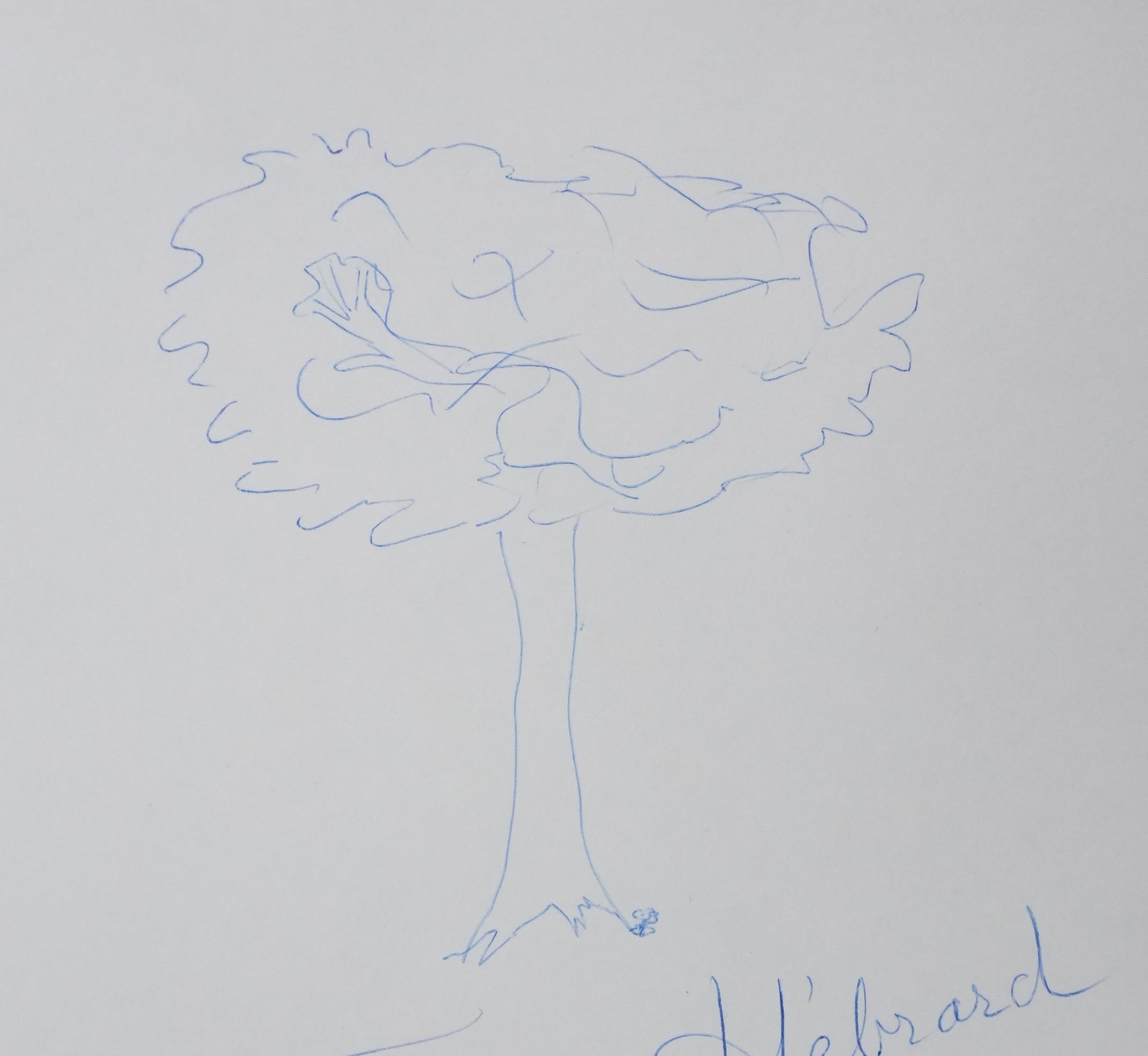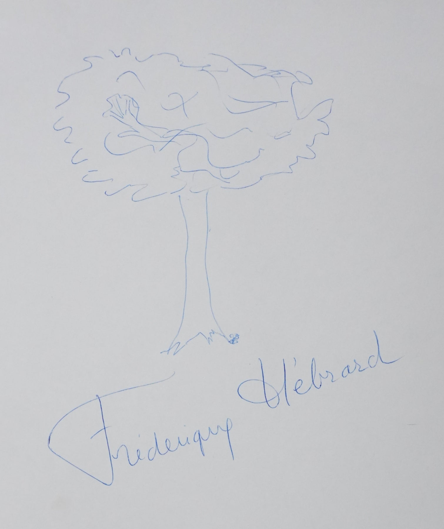 Frédérique HEBRARD : L'arbre aux grandes branches, Autographe et dessin original signé
