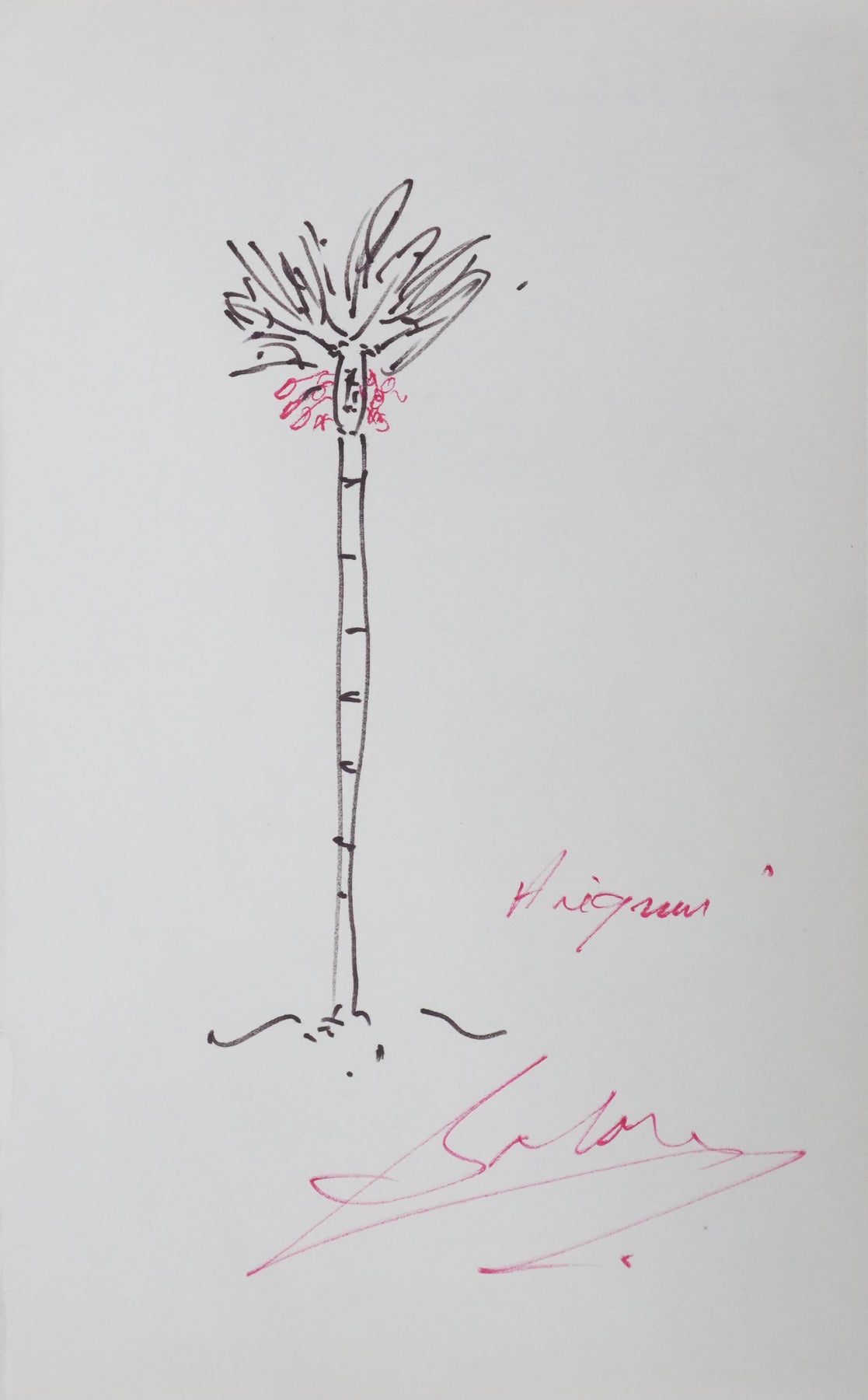PROVENANCE : Ce dessin provient de la collection personnelle de Pierre Lhoste. Journaliste de radio, Pierre Lhoste (1913-1984) demanda aux personnalités qu’il recevait de réaliser un autographe accompagné d'un dessin d’arbre, constituant ainsi un témoignage unique de ses entretiens.