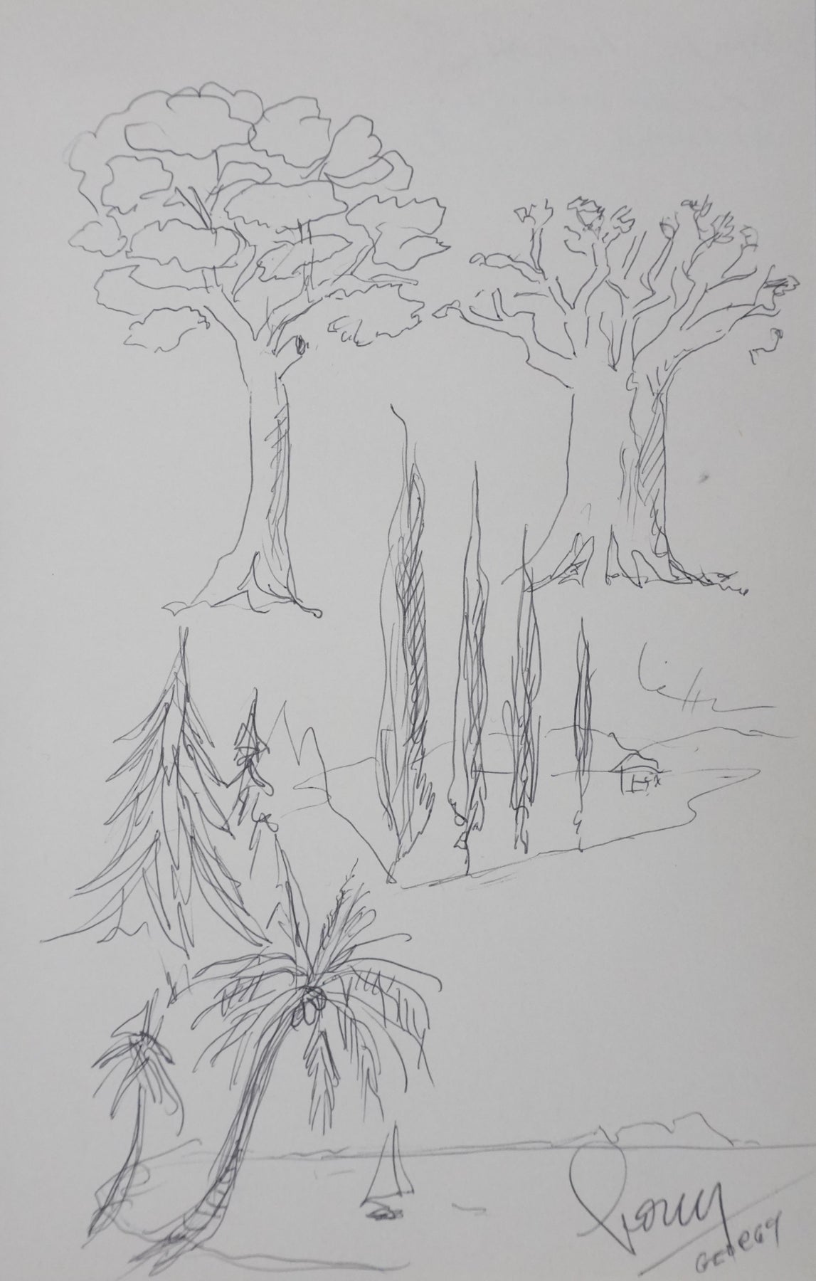 PROVENANCE : Ce dessin provient de la collection personnelle de Pierre Lhoste. Journaliste de radio, Pierre Lhoste (1913-1984) demanda aux personnalités qu’il recevait de réaliser un autographe accompagné d'un dessin d’arbre, constituant ainsi un témoignage unique de ses entretiens.
