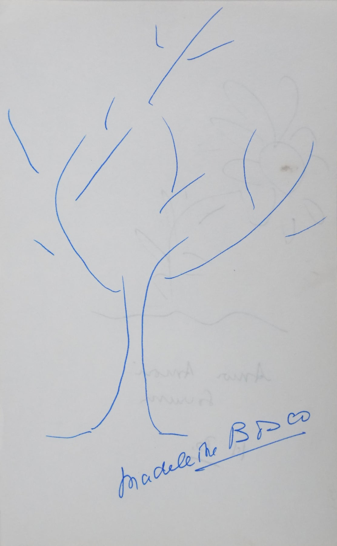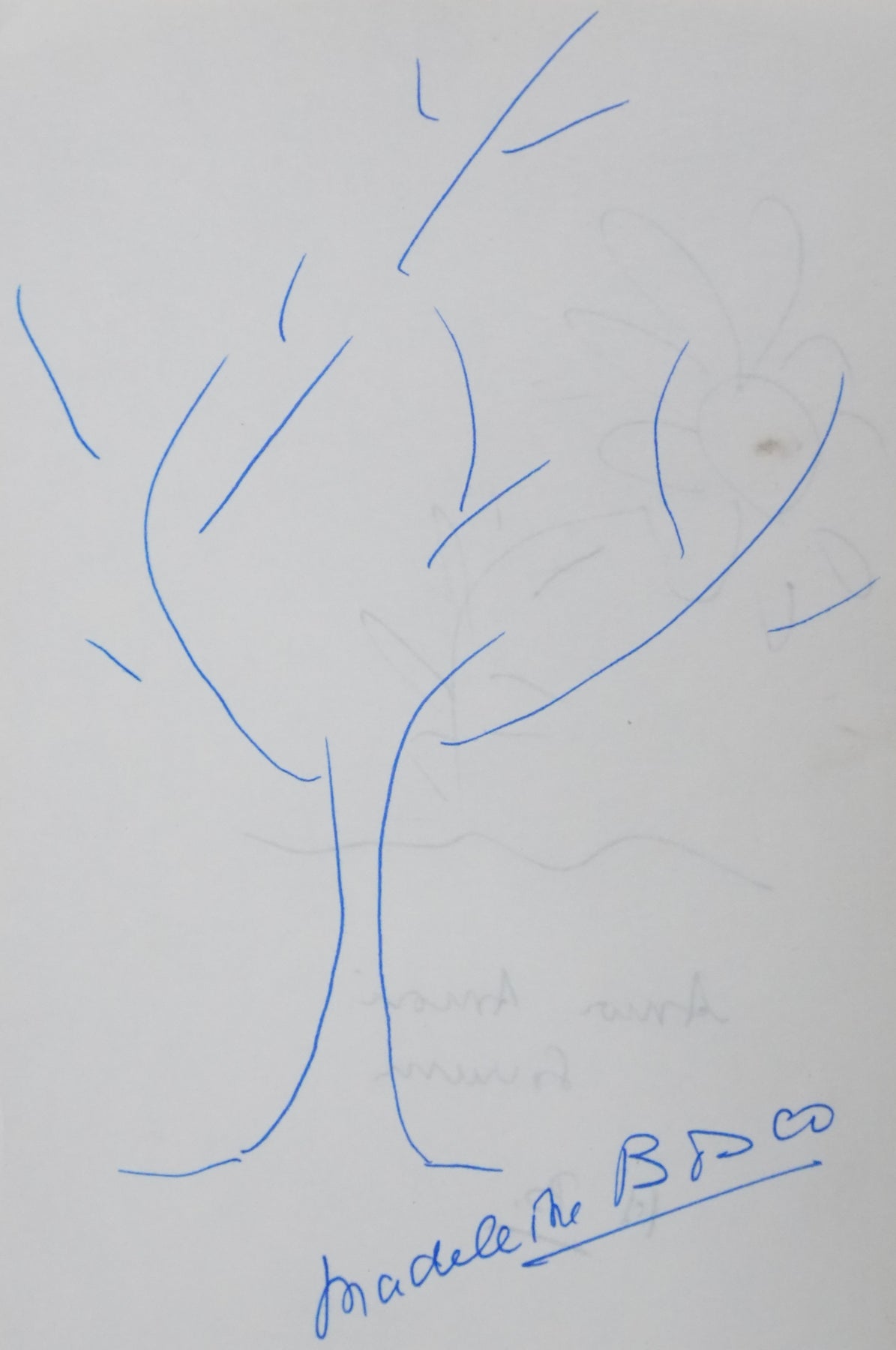 PROVENANCE : Ce dessin provient de la collection personnelle de Pierre Lhoste. Journaliste de radio, Pierre Lhoste (1913-1984) demanda aux personnalités qu’il recevait de réaliser un autographe accompagné d'un dessin d’arbre, constituant ainsi un témoignage unique de ses entretiens.
