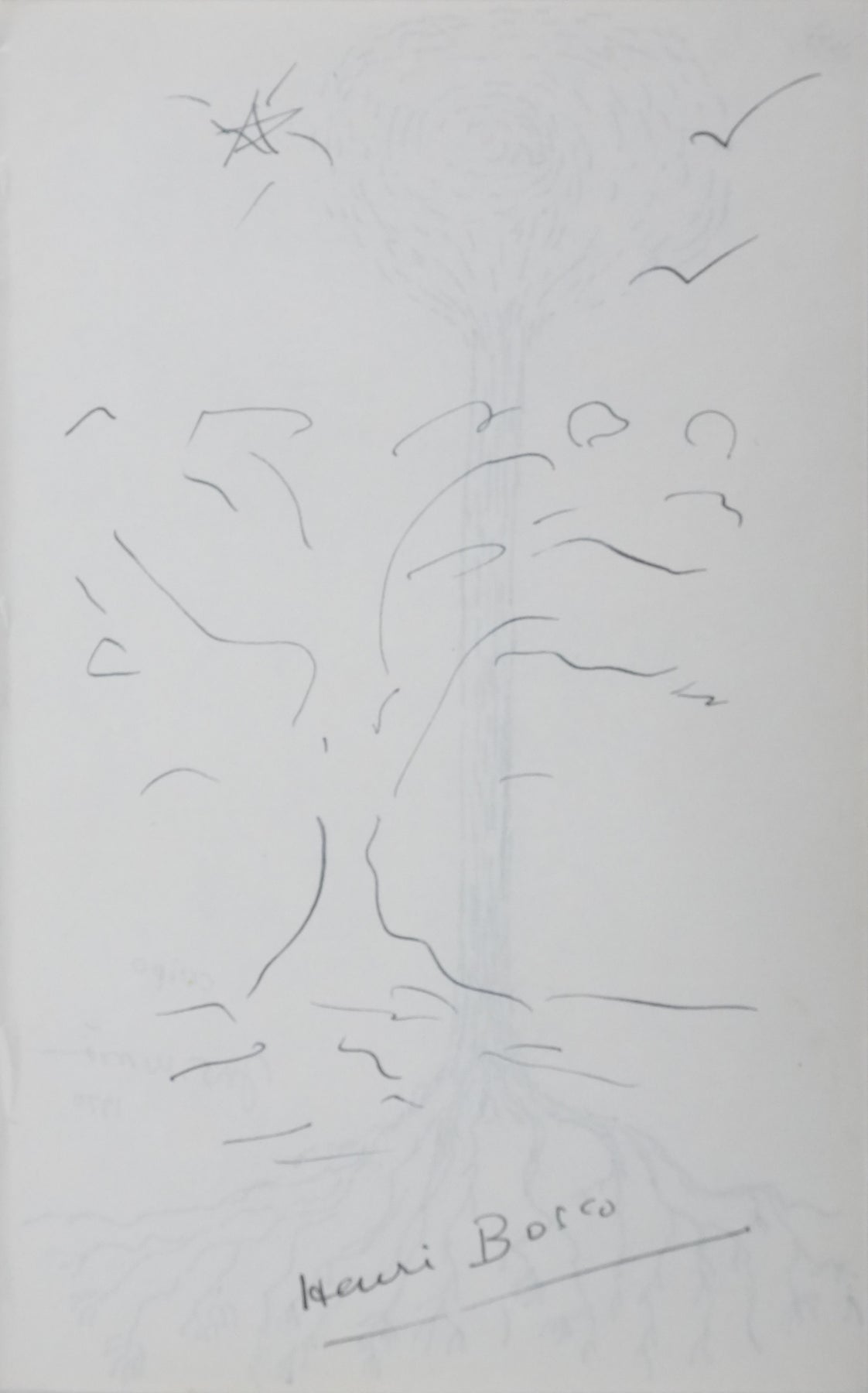 INFORMATION : Henri Bosco était un romancier et poète français. Son œuvre, empreinte de mysticisme et de lyrisme, célèbre la Provence et le lien entre l’homme et la nature. Auteur de romans tels que L’Enfant et la rivière, Le Mas Théotime ou Malicroix, il reçut le Grand Prix national des lettres en 1955 et fut membre de l’Académie de Marseille. Autre dessin à l'encre au verso de l'œuvre (voir photo).