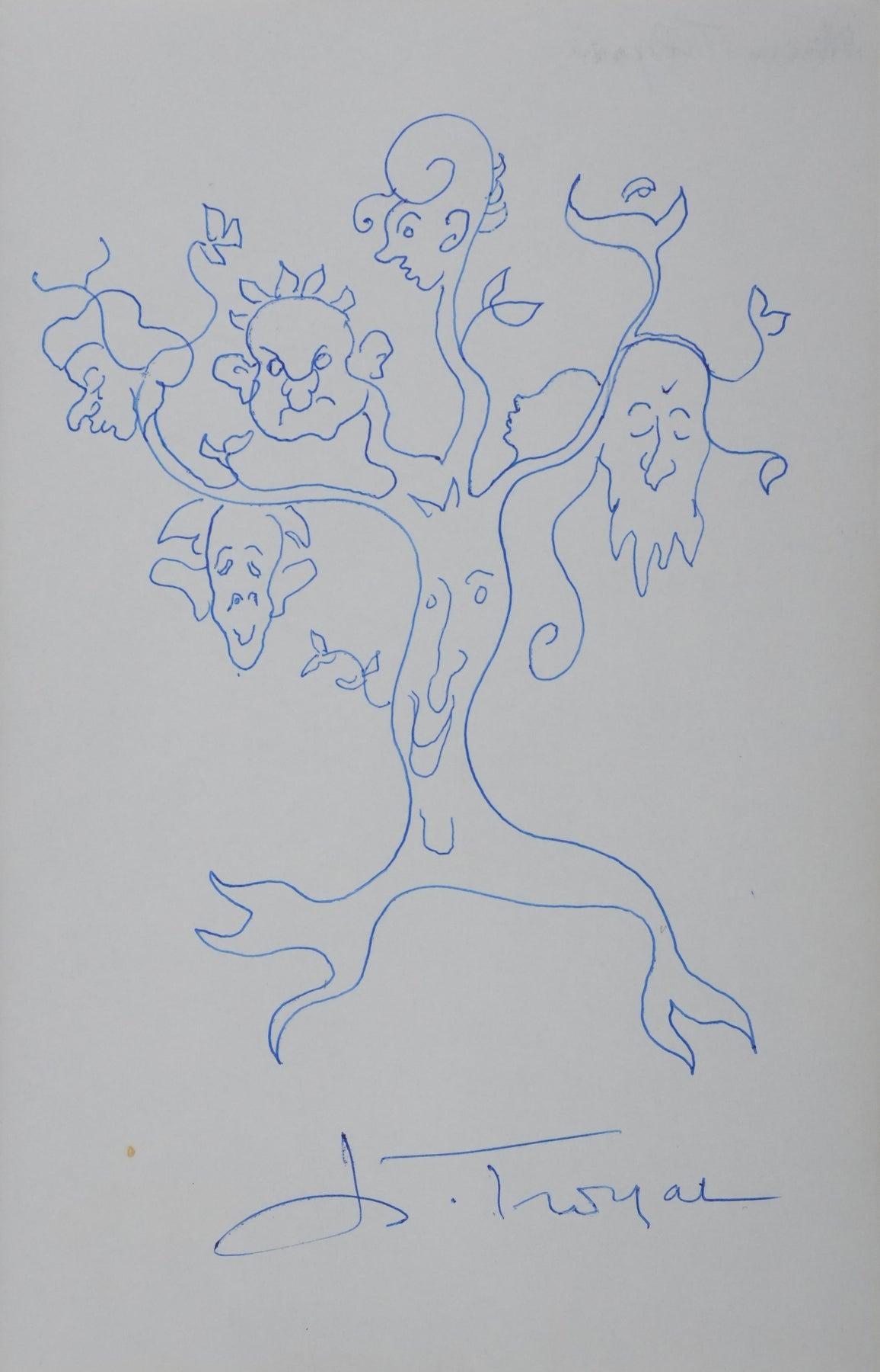 PROVENANCE : Ce dessin provient de la collection personnelle de Pierre Lhoste. Journaliste de radio, Pierre Lhoste (1913-1984) demanda aux personnalités qu’il recevait de réaliser un autographe accompagné d'un dessin d’arbre, constituant ainsi un témoignage unique de ses entretiens.