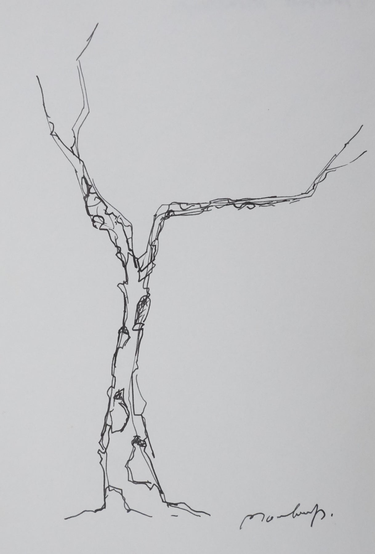 PROVENANCE : Ce dessin provient de la collection personnelle de Pierre Lhoste. Journaliste de radio, Pierre Lhoste (1913-1984) demanda aux personnalités qu’il recevait de réaliser un autographe accompagné d'un dessin d’arbre, constituant ainsi un témoignage unique de ses entretiens.