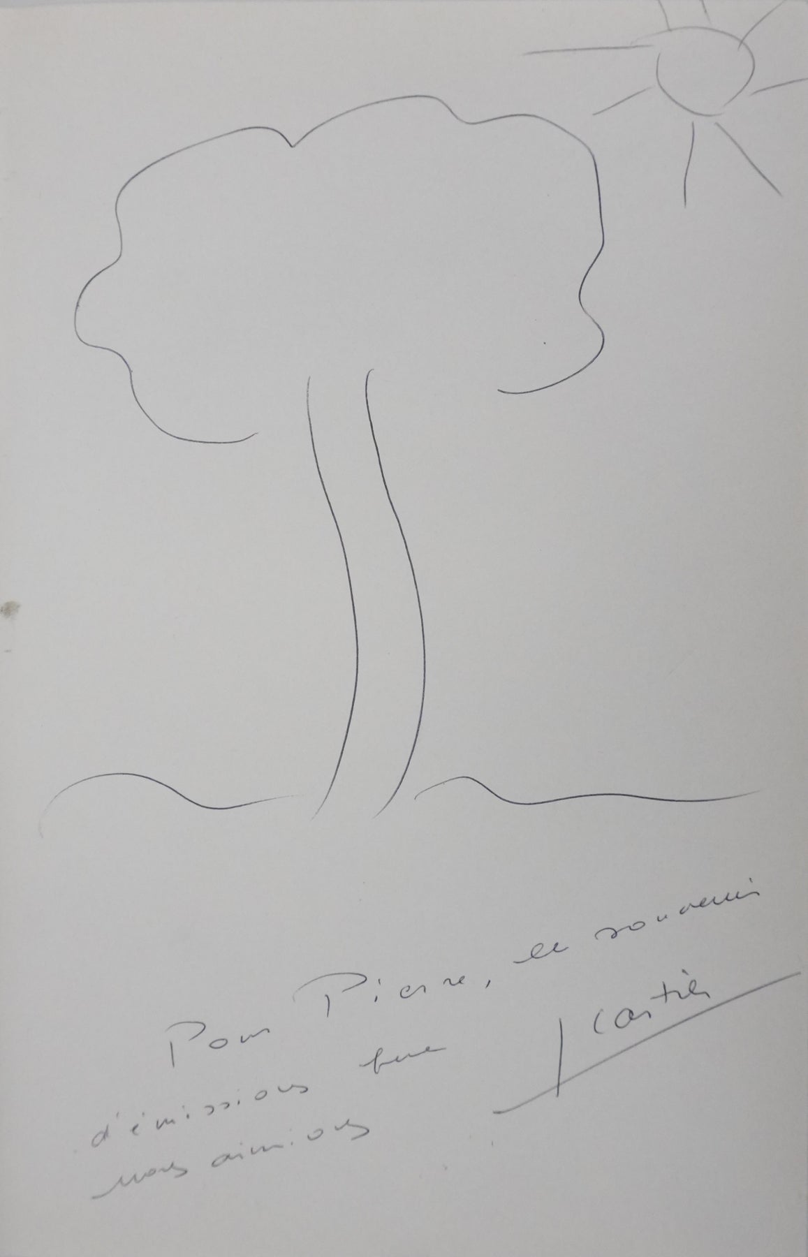 Jacqueline CARTIER : L'arbre sous le soleil, Autographe et dessin original signé