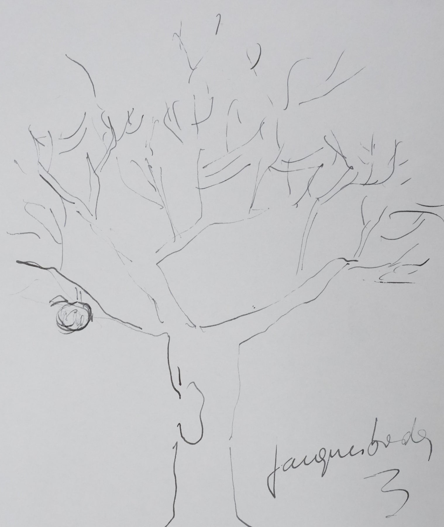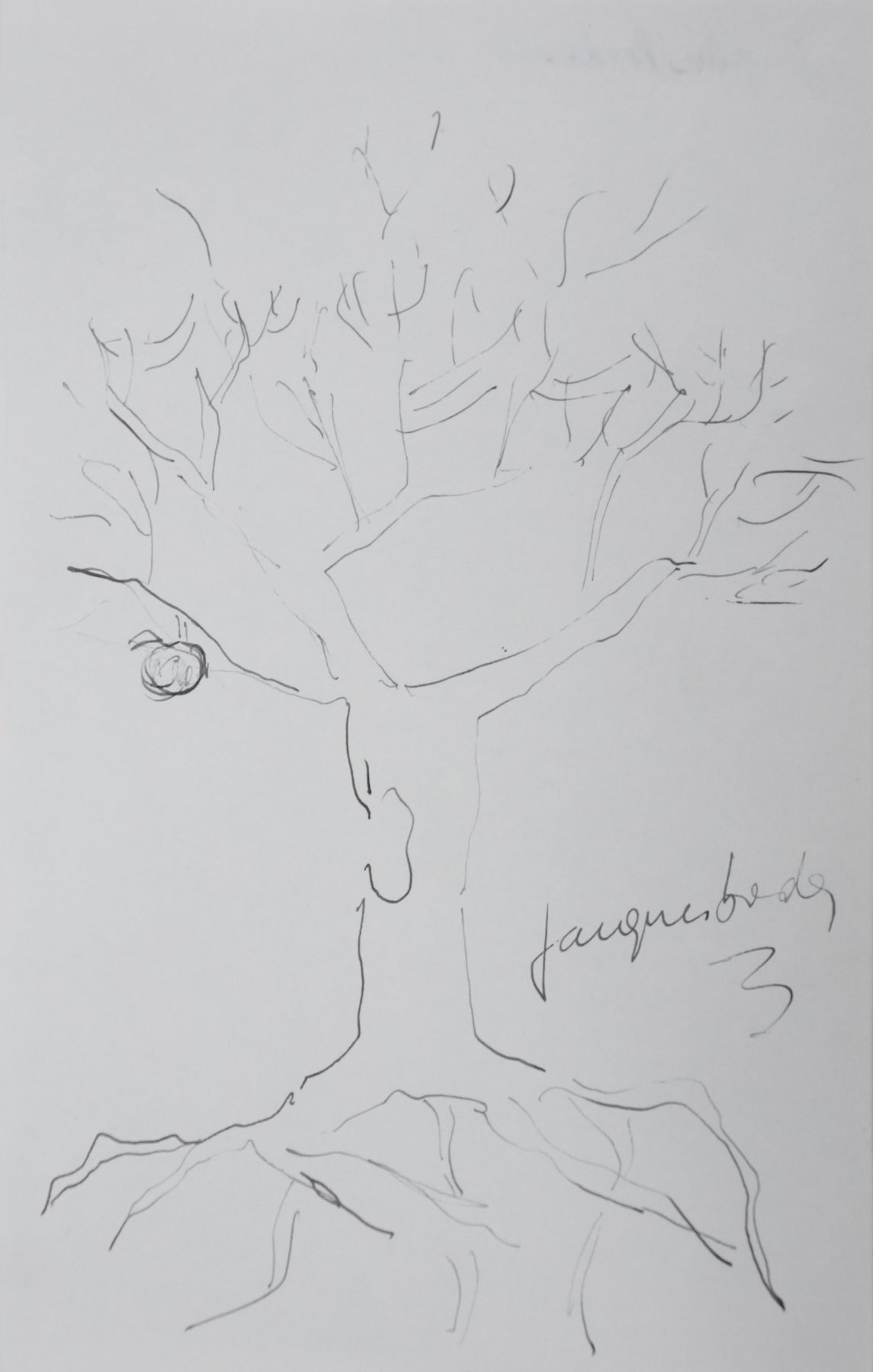Jacques BODOIN : L'arbre du fruit suspendu, Autographe et dessin original signé