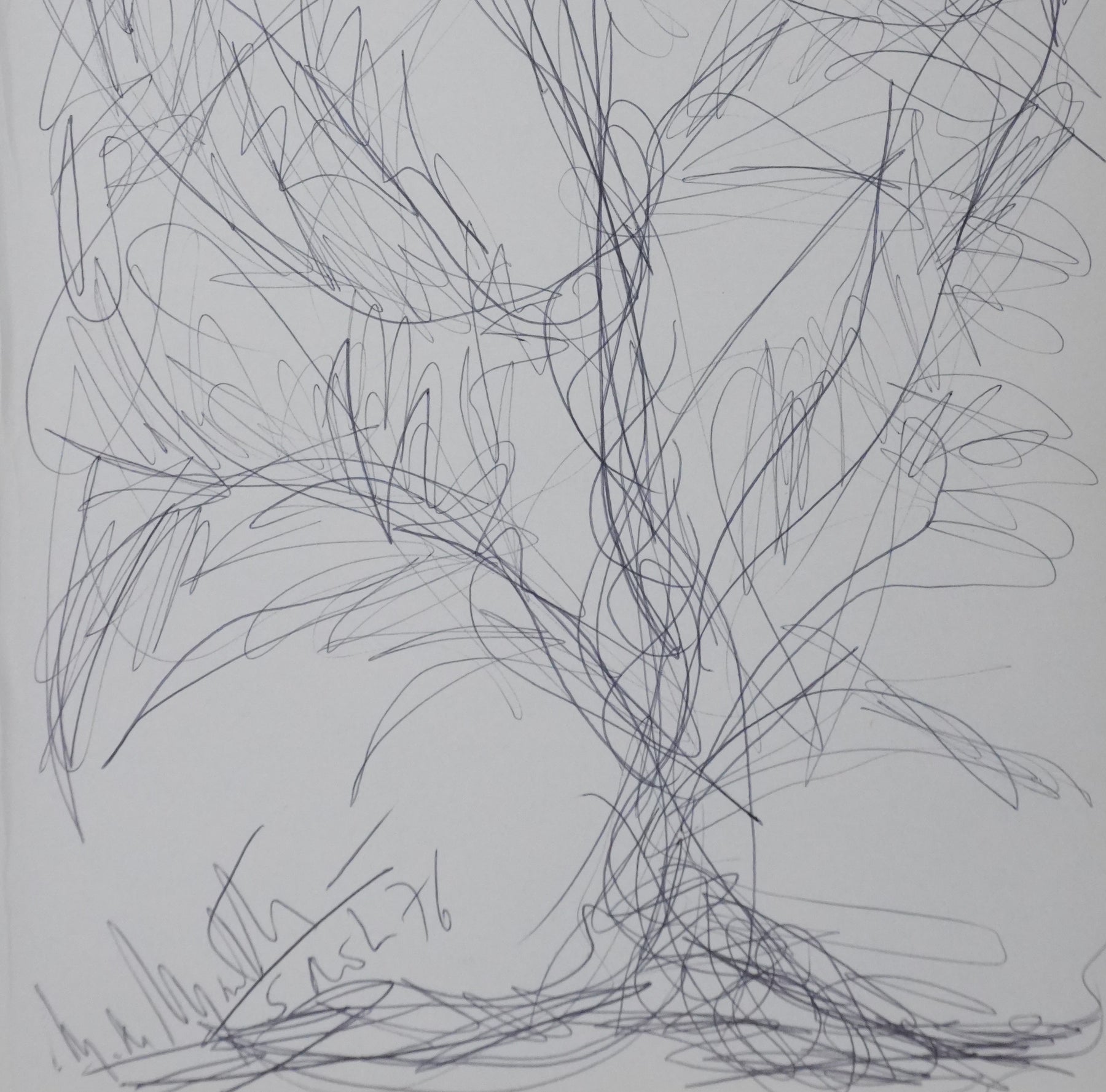 PROVENANCE : Ce dessin provient de la collection personnelle de Pierre Lhoste. Journaliste de radio, Pierre Lhoste (1913-1984) demanda aux personnalités qu’il recevait de réaliser un autographe accompagné d'un dessin d’arbre, constituant ainsi un témoignage unique de ses entretiens.