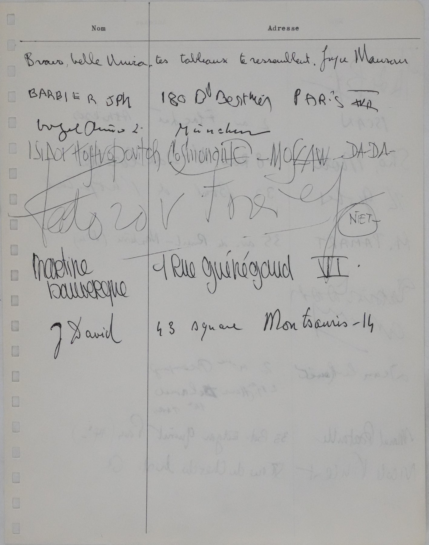 PROVENANCE : Livre d'or de la galerie le Point Cardinal (Paris) entre 1962 et 1964. Ensemble d'autographes laissés lors des expositions d'Unica ZURN, peintre et poétesse allemande, compagne d'Hans BELLMER.