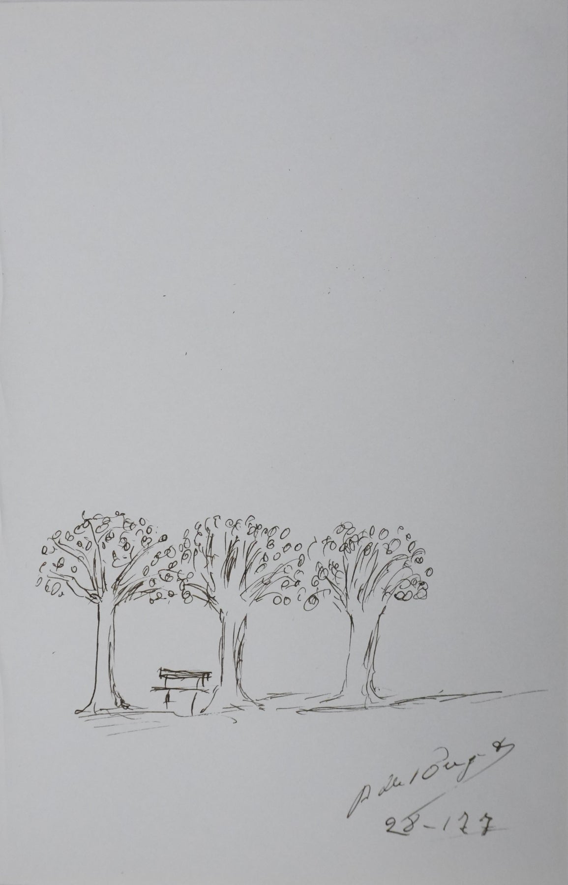 PROVENANCE : Ce dessin provient de la collection personnelle de Pierre Lhoste. Journaliste de radio, Pierre Lhoste (1913-1984) demanda aux personnalités qu’il recevait de réaliser un autographe accompagné d'un dessin d’arbre, constituant ainsi un témoignage unique de ses entretiens.