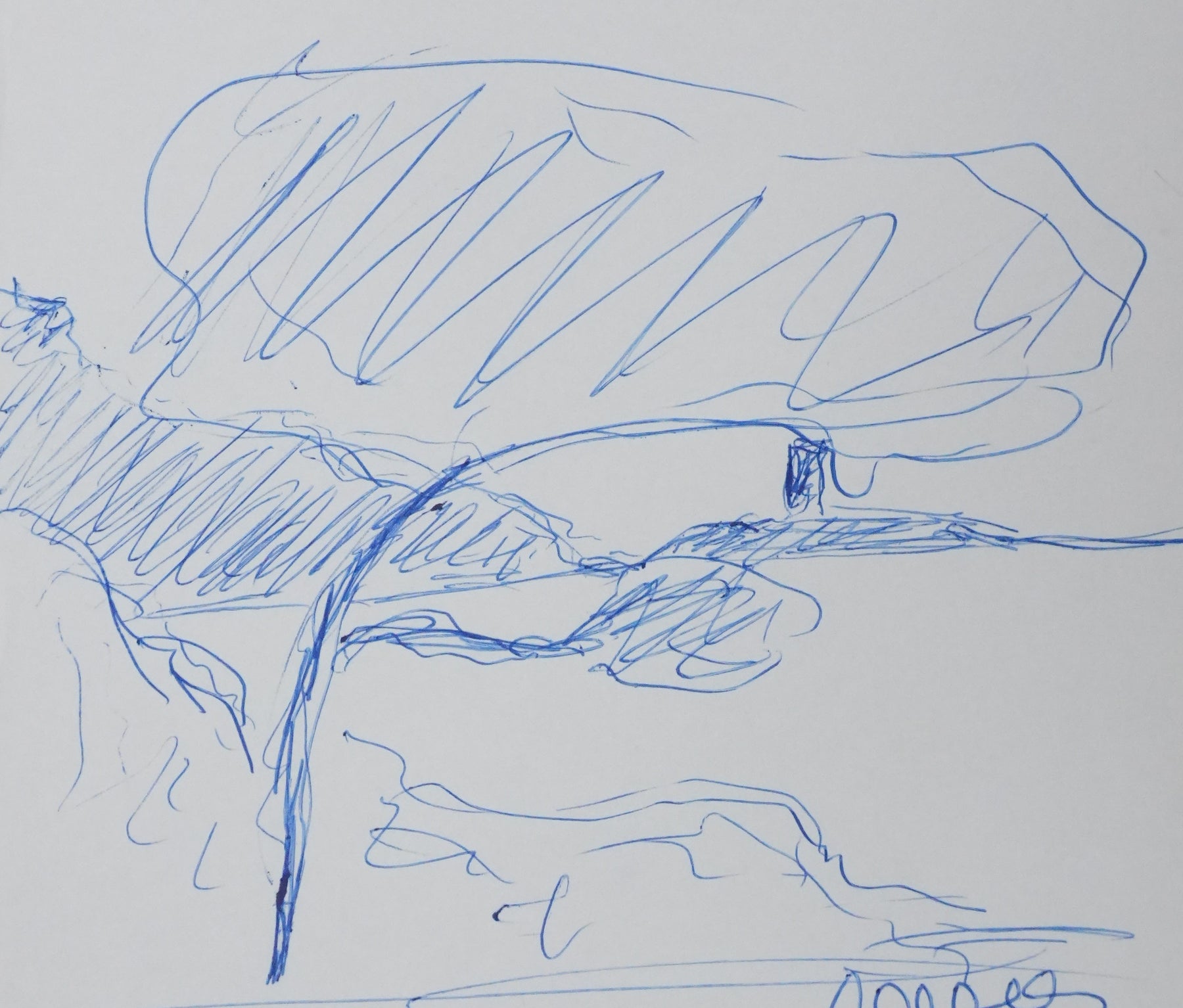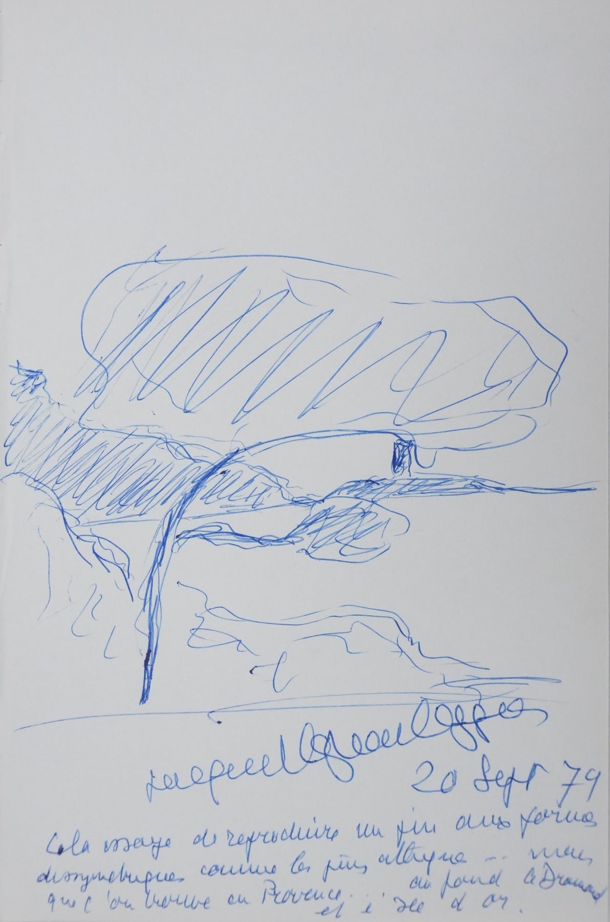 PROVENANCE : Ce dessin provient de la collection personnelle de Pierre Lhoste. Journaliste de radio, Pierre Lhoste (1913-1984) demanda aux personnalités qu’il recevait de réaliser un autographe accompagné d'un dessin d’arbre, constituant ainsi un témoignage unique de ses entretiens.