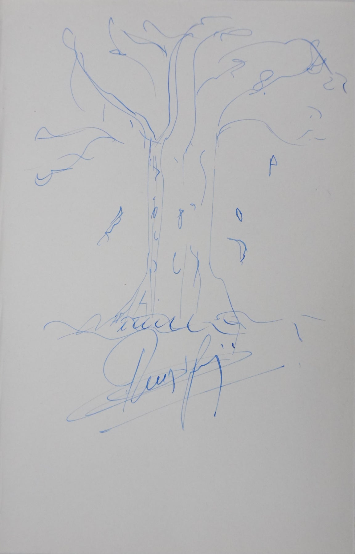 PROVENANCE : Ce dessin provient de la collection personnelle de Pierre Lhoste. Journaliste de radio, Pierre Lhoste (1913-1984) demanda aux personnalités qu’il recevait de réaliser un autographe accompagné d'un dessin d’arbre, constituant ainsi un témoignage unique de ses entretiens.