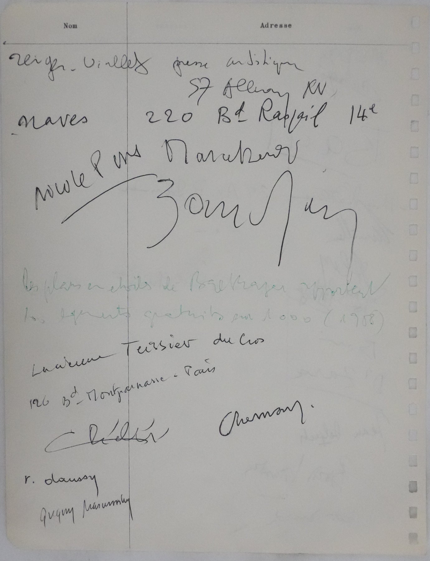 Comprenant notamment les autographes de :