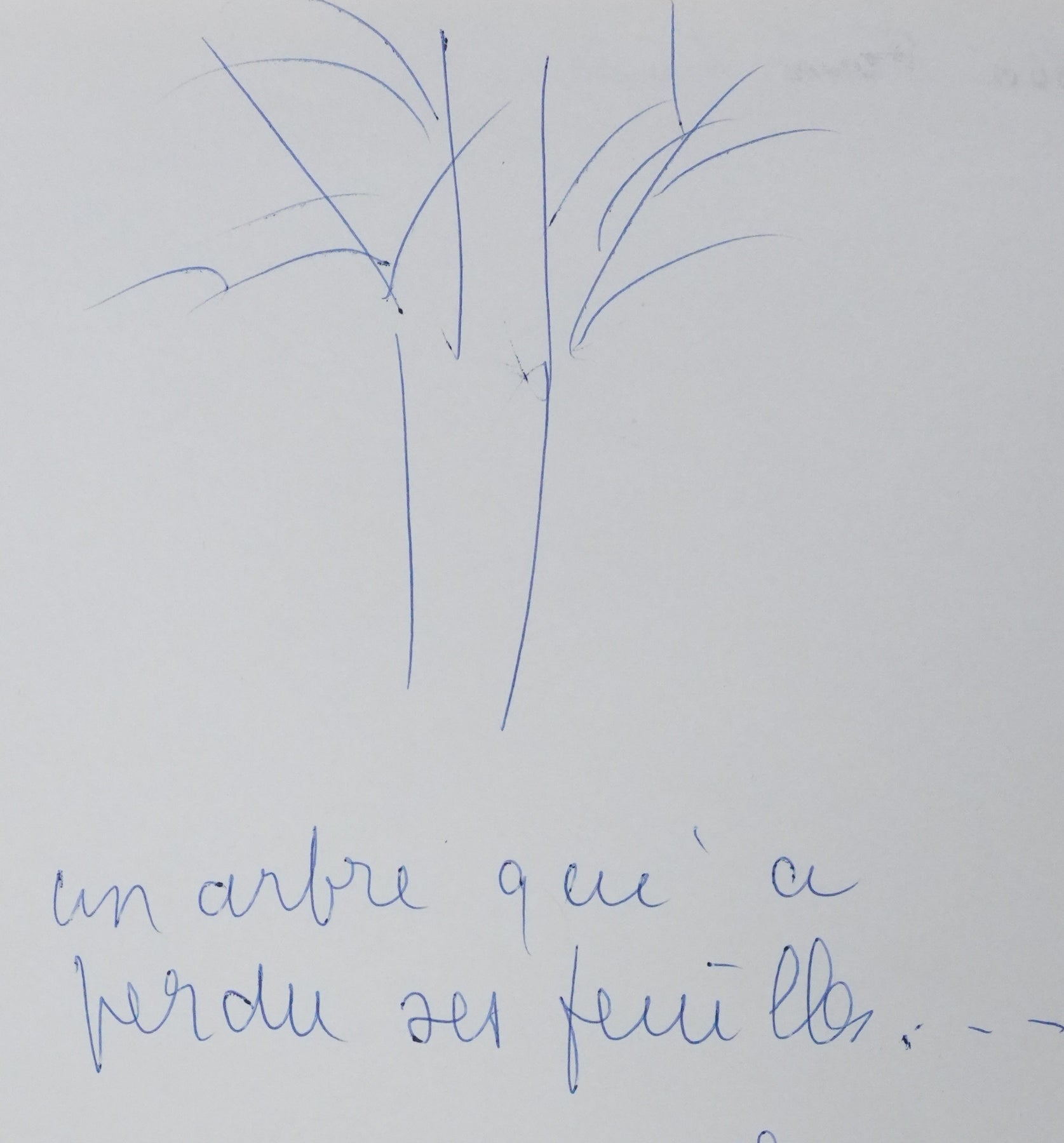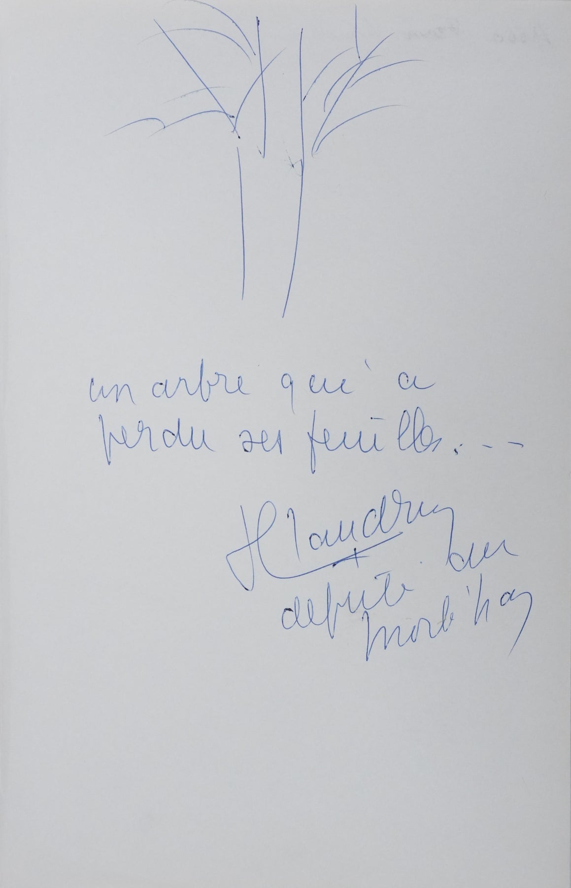 Hervé LAUDRIN : Un arbre qui a perdu ses feuilles, Autographe et dessin original signé