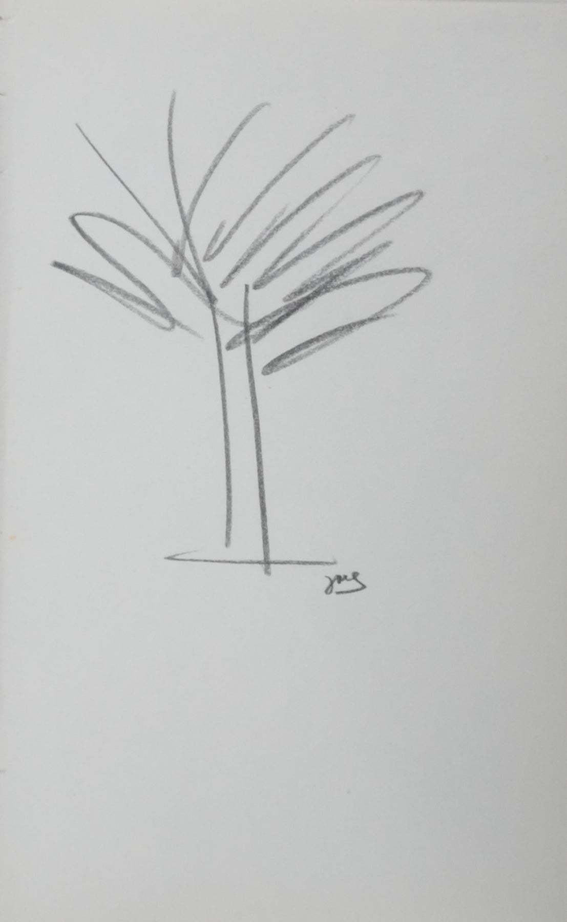 PROVENANCE : Ce dessin provient de la collection personnelle de Pierre Lhoste. Journaliste de radio, Pierre Lhoste (1913-1984) demanda aux personnalités qu’il recevait de réaliser un autographe accompagné d'un dessin d’arbre, constituant ainsi un témoignage unique de ses entretiens.