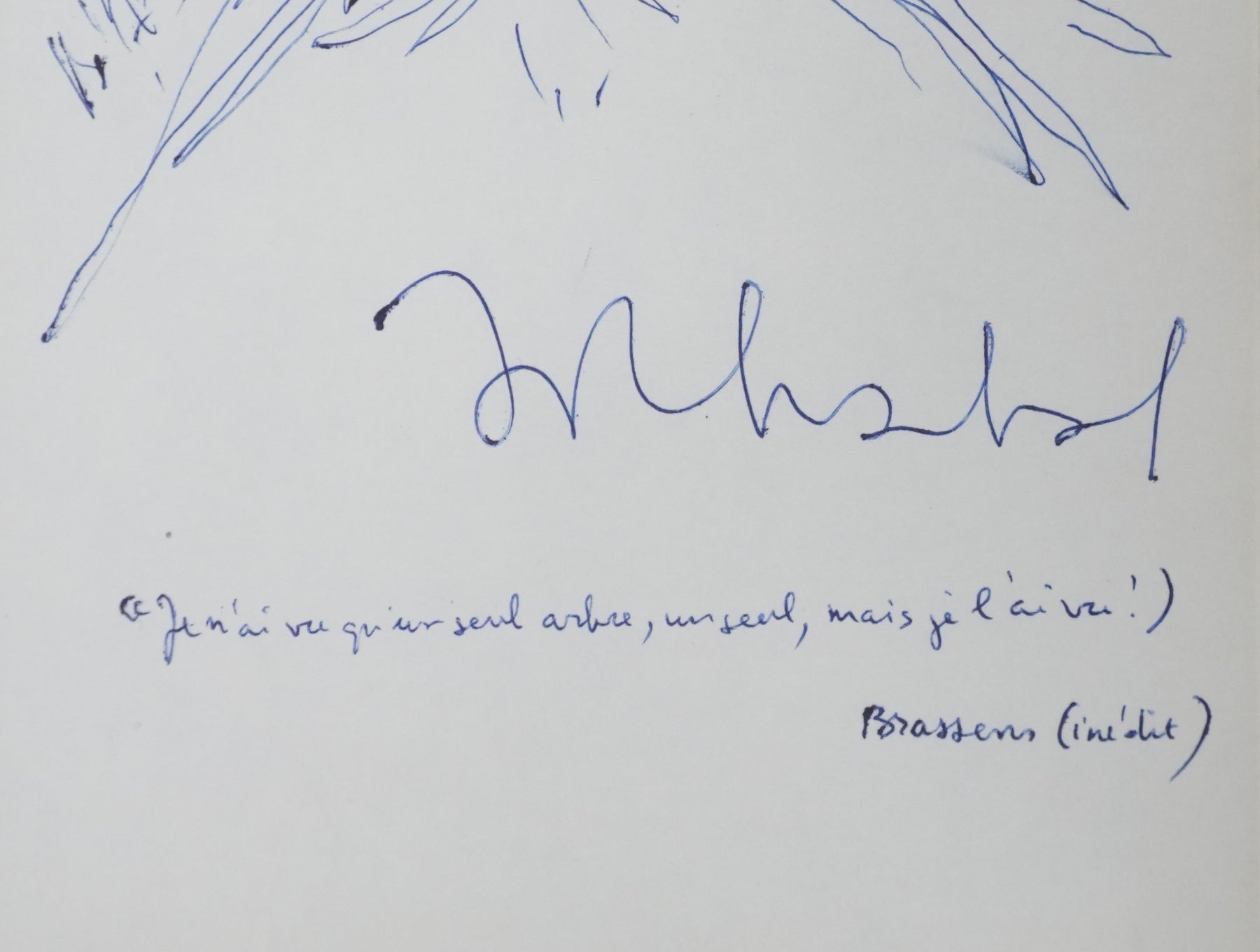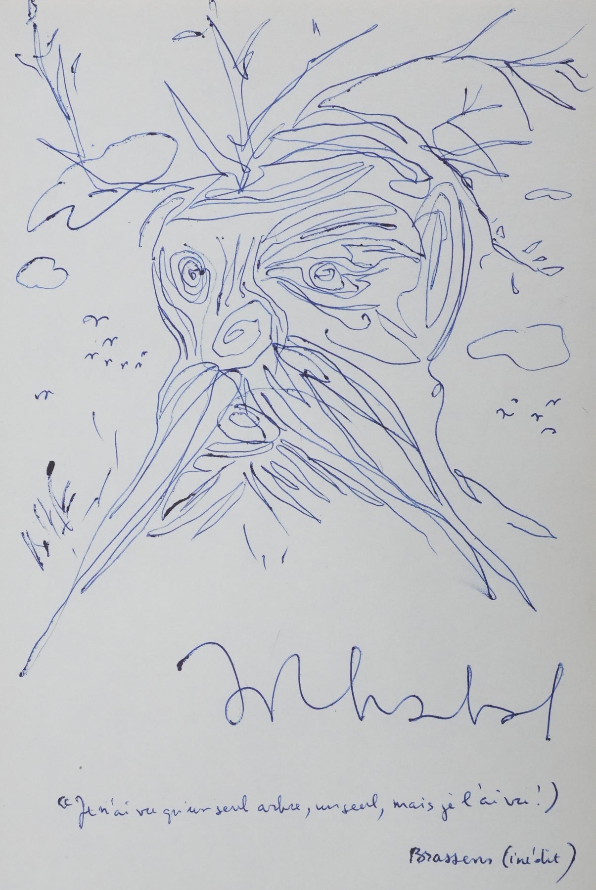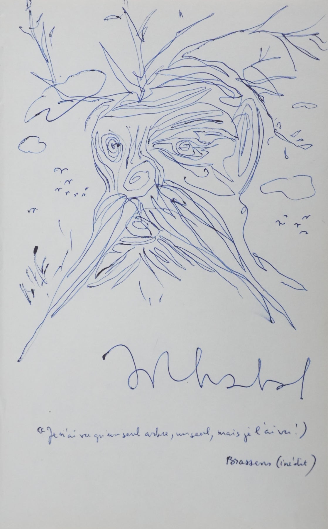 PROVENANCE : Ce dessin provient de la collection personnelle de Pierre Lhoste. Journaliste de radio, Pierre Lhoste (1913-1984) demanda aux personnalités qu’il recevait de réaliser un autographe accompagné d'un dessin d’arbre, constituant ainsi un témoignage unique de ses entretiens.
