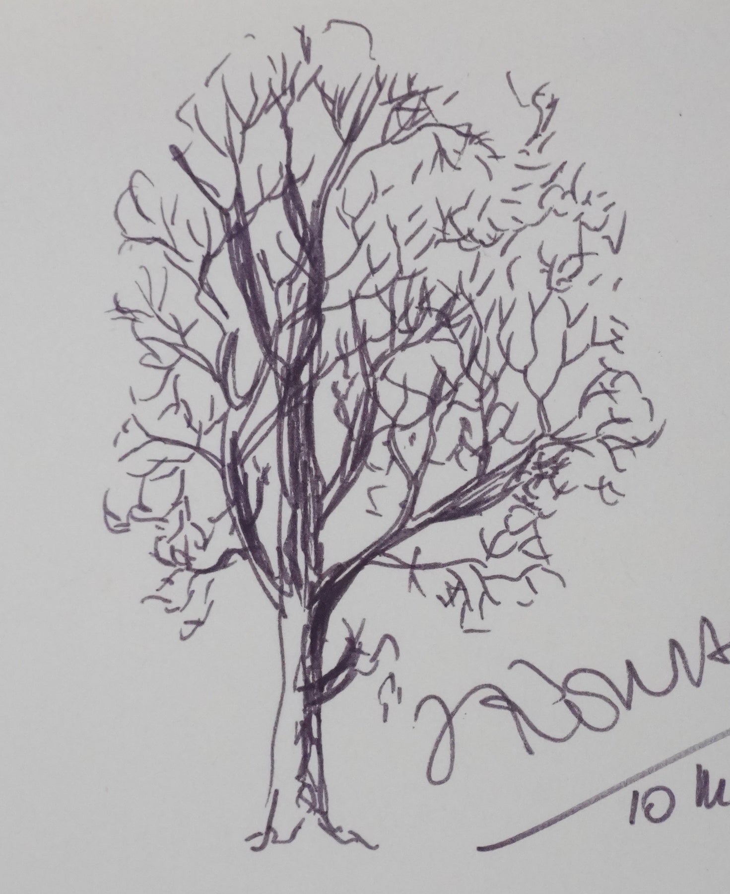 PROVENANCE : Ce dessin provient de la collection personnelle de Pierre Lhoste. Journaliste de radio, Pierre Lhoste (1913-1984) demanda aux personnalités qu’il recevait de réaliser un autographe accompagné d'un dessin d’arbre, constituant ainsi un témoignage unique de ses entretiens.
