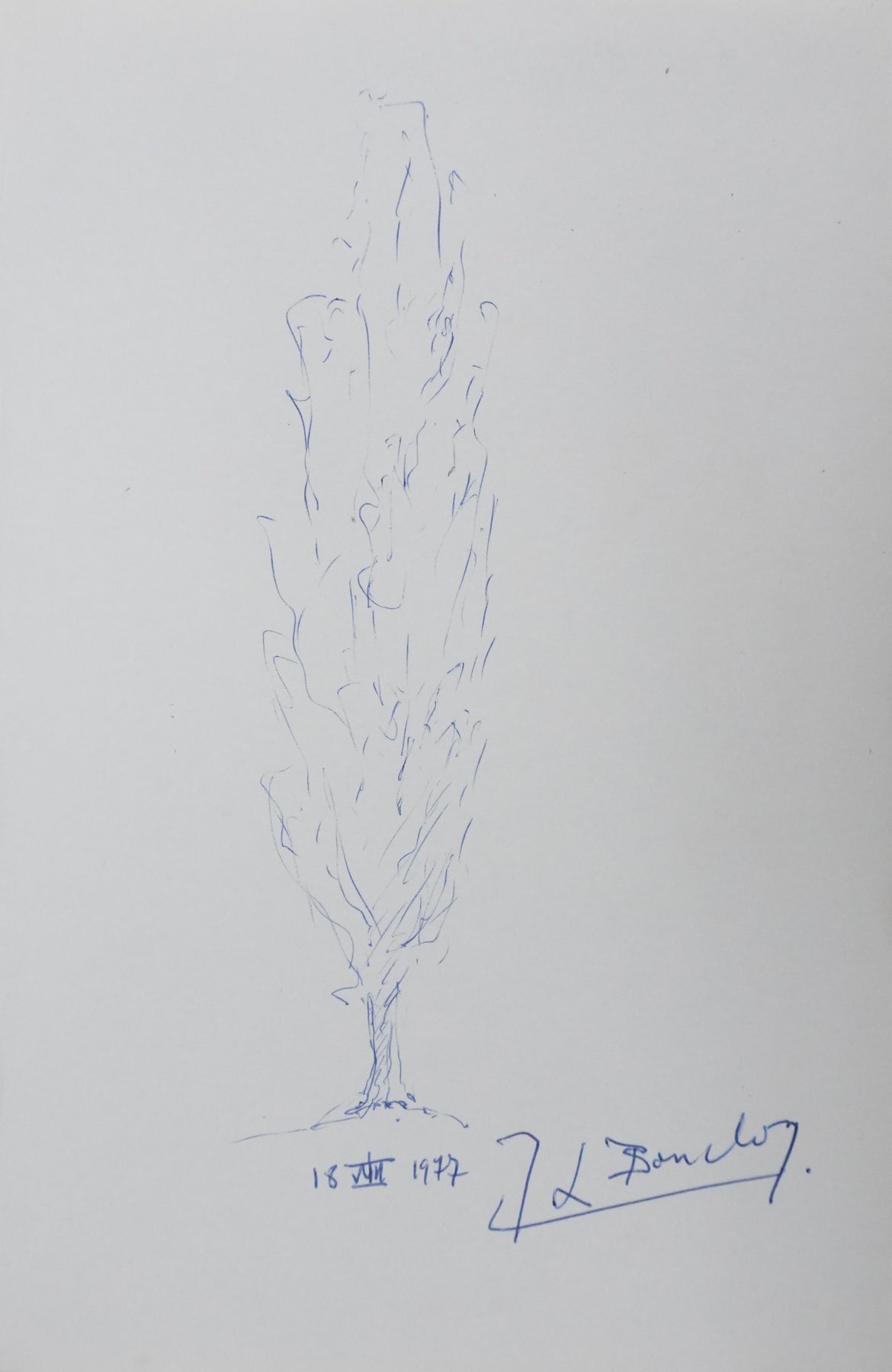 PROVENANCE : Ce dessin provient de la collection personnelle de Pierre Lhoste. Journaliste de radio, Pierre Lhoste (1913-1984) demanda aux personnalités qu’il recevait de réaliser un autographe accompagné d'un dessin d’arbre, constituant ainsi un témoignage unique de ses entretiens.
