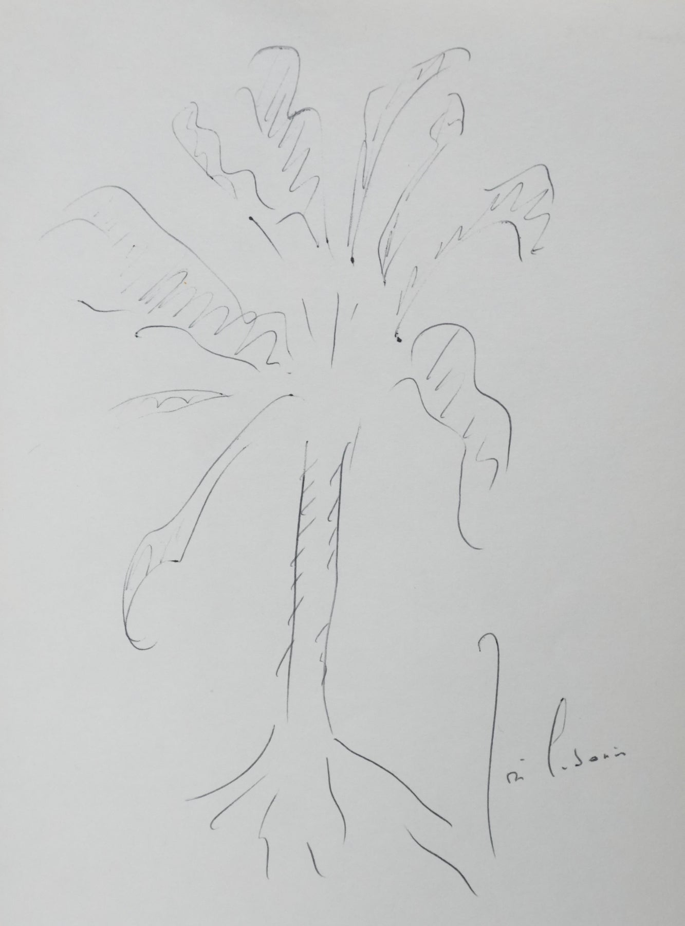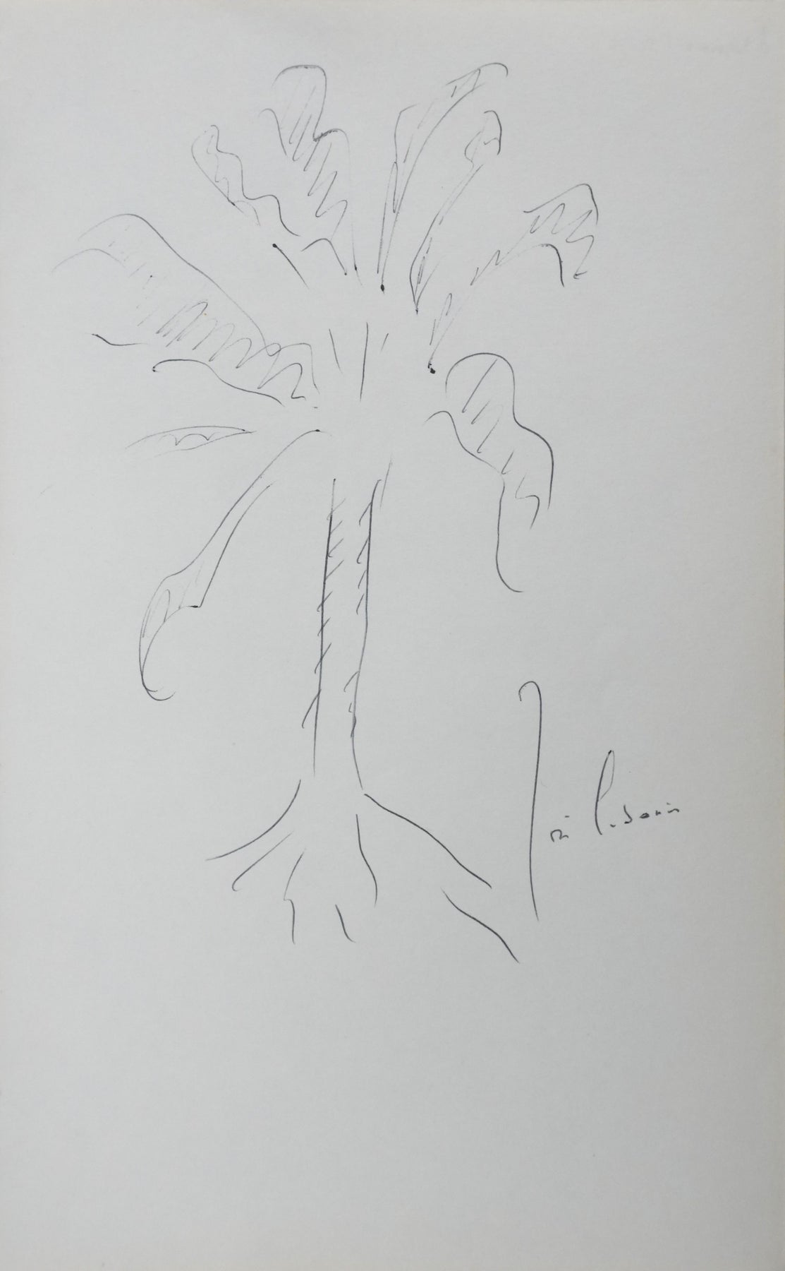 PROVENANCE : Ce dessin provient de la collection personnelle de Pierre Lhoste. Journaliste de radio, Pierre Lhoste (1913-1984) demanda aux personnalités qu’il recevait de réaliser un autographe accompagné d'un dessin d’arbre, constituant ainsi un témoignage unique de ses entretiens.
