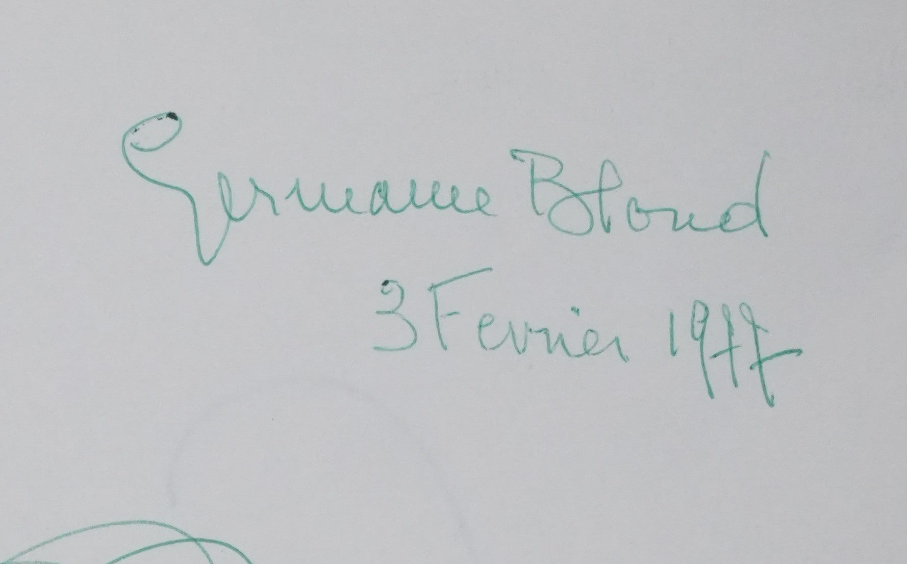 INFORMATION : Germaine Blond était la collaboratrice et épouse de Georges Blond (1906-1989) de son vrai nom Jean-Marie Hoedick, écrivain et journaliste français.