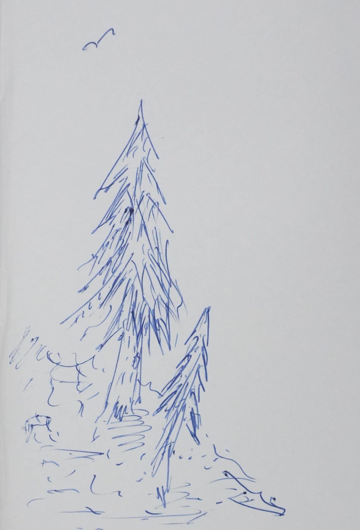PROVENANCE : Ce dessin provient de la collection personnelle de Pierre Lhoste. Journaliste de radio, Pierre Lhoste (1913-1984) demanda aux personnalités qu’il recevait de réaliser un autographe accompagné d'un dessin d’arbre, constituant ainsi un témoignage unique de ses entretiens.