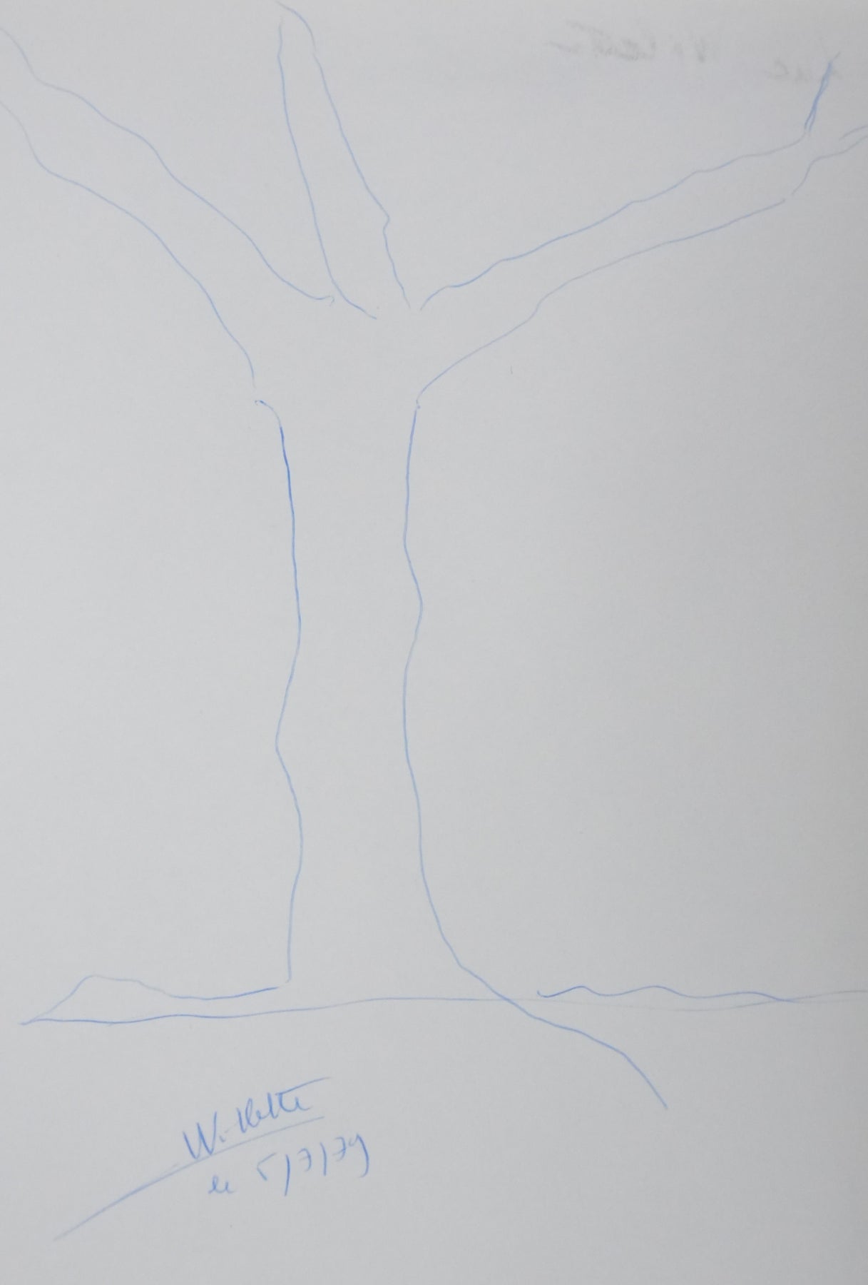 PROVENANCE : Ce dessin provient de la collection personnelle de Pierre Lhoste. Journaliste de radio, Pierre Lhoste (1913-1984) demanda aux personnalités qu’il recevait de réaliser un autographe accompagné d'un dessin d’arbre, constituant ainsi un témoignage unique de ses entretiens.