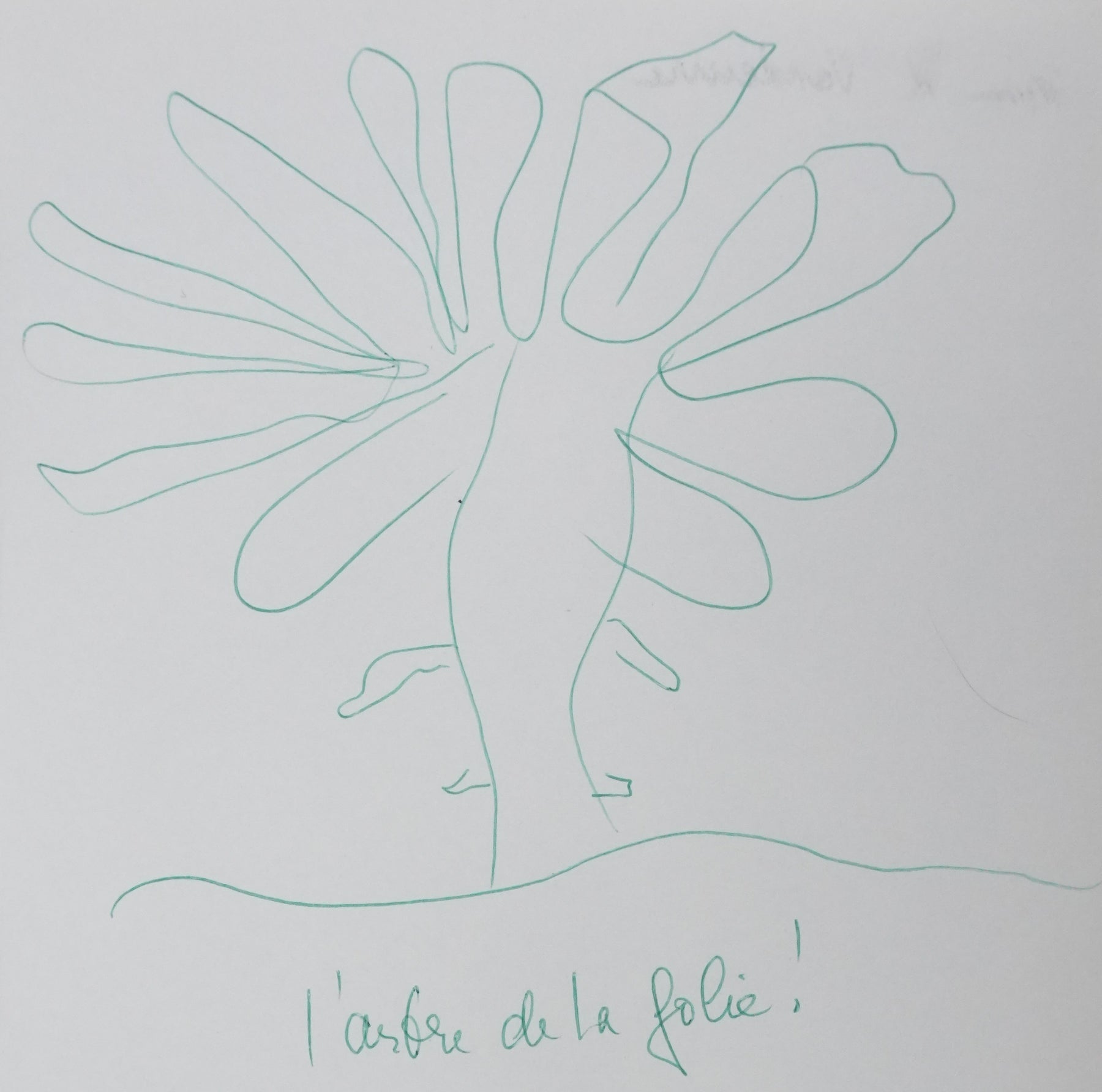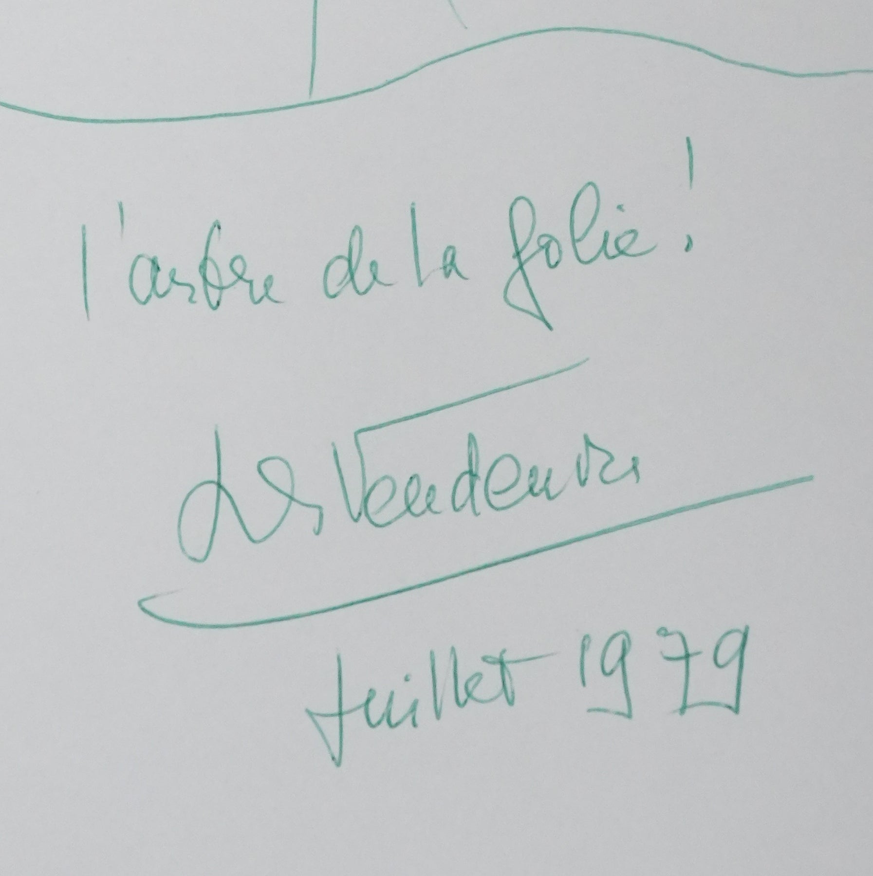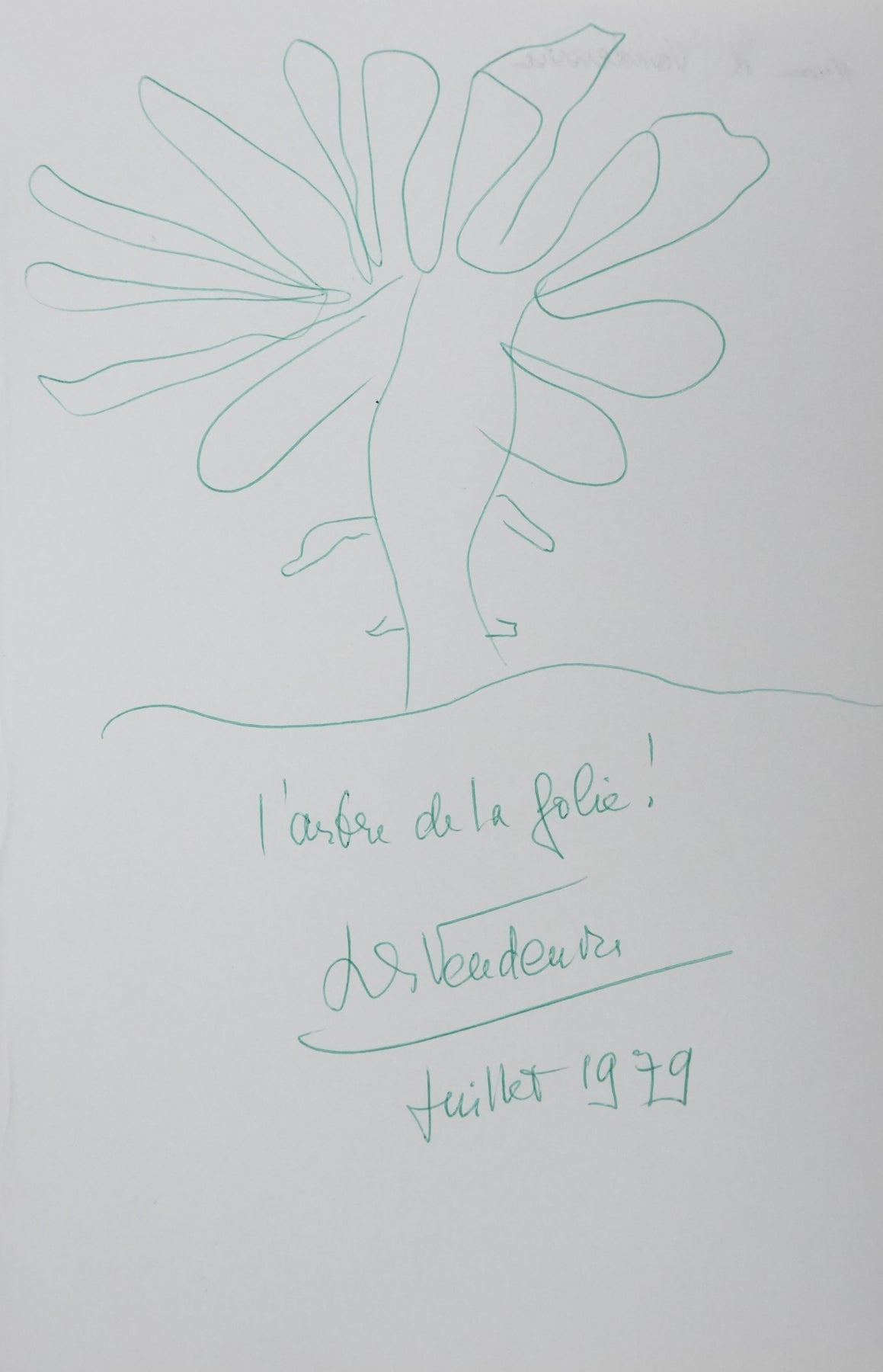 PROVENANCE : Ce dessin provient de la collection personnelle de Pierre Lhoste. Journaliste de radio, Pierre Lhoste (1913-1984) demanda aux personnalités qu’il recevait de réaliser un autographe accompagné d'un dessin d’arbre, constituant ainsi un témoignage unique de ses entretiens.
