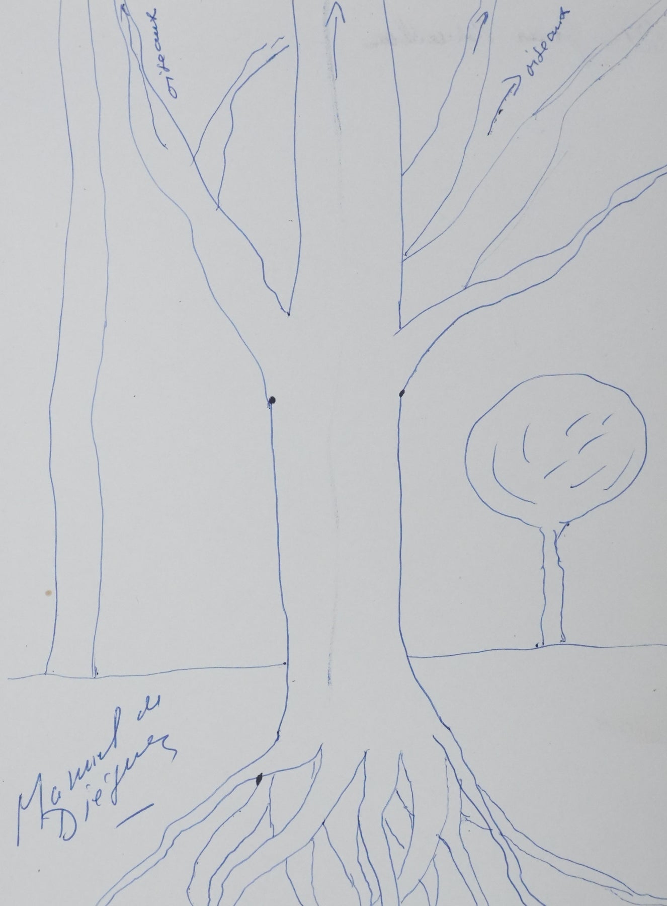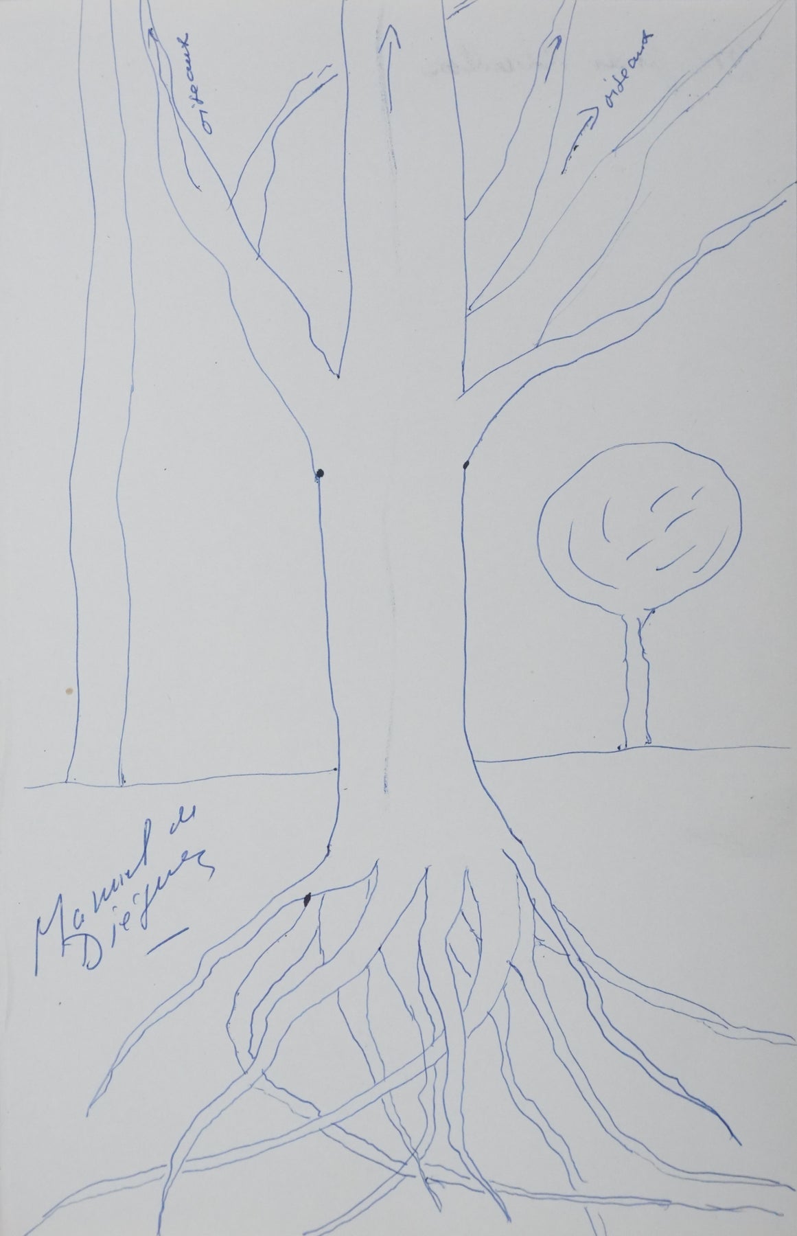 PROVENANCE : Ce dessin provient de la collection personnelle de Pierre Lhoste. Journaliste de radio, Pierre Lhoste (1913-1984) demanda aux personnalités qu’il recevait de réaliser un autographe accompagné d'un dessin d’arbre, constituant ainsi un témoignage unique de ses entretiens.