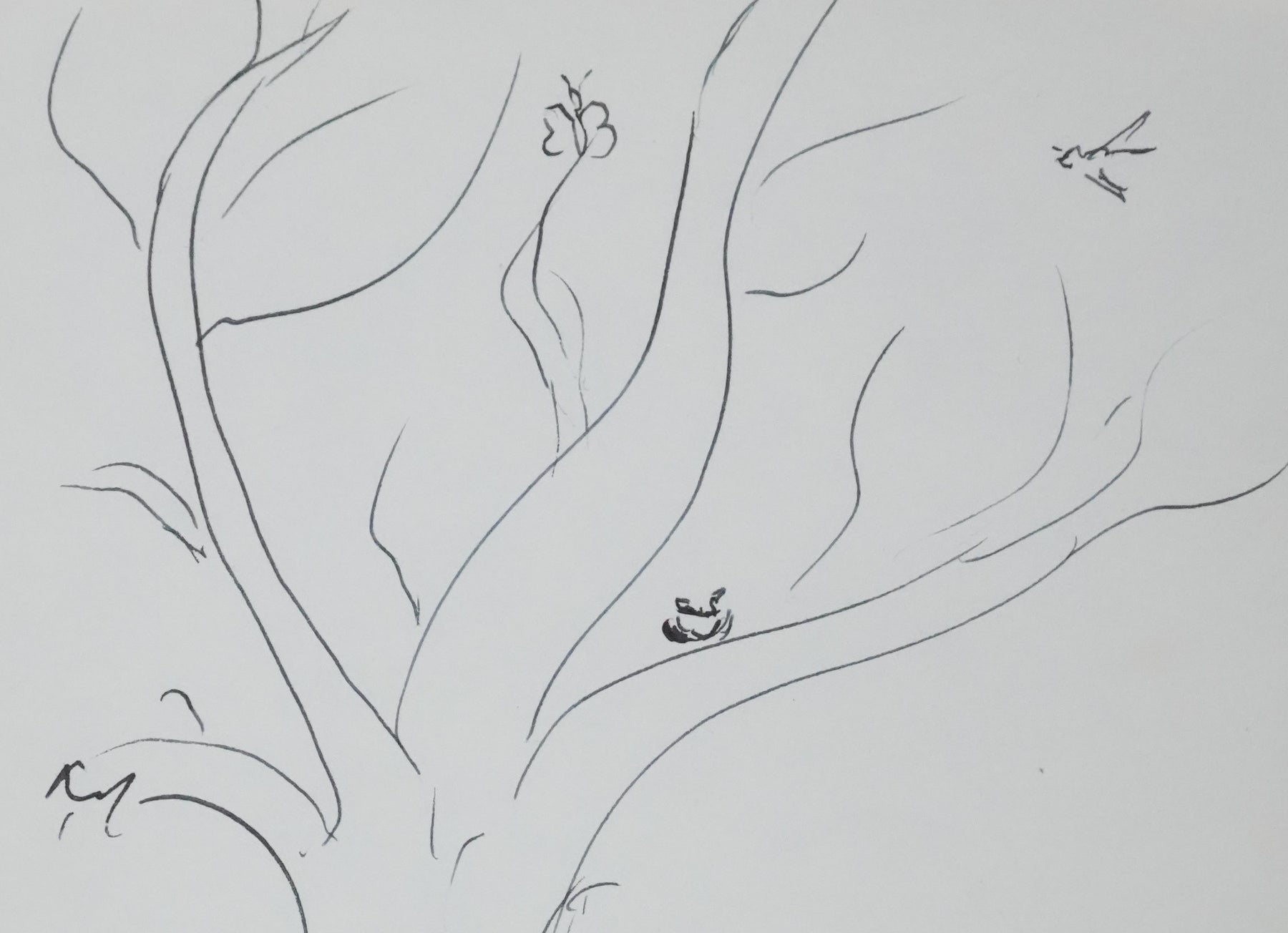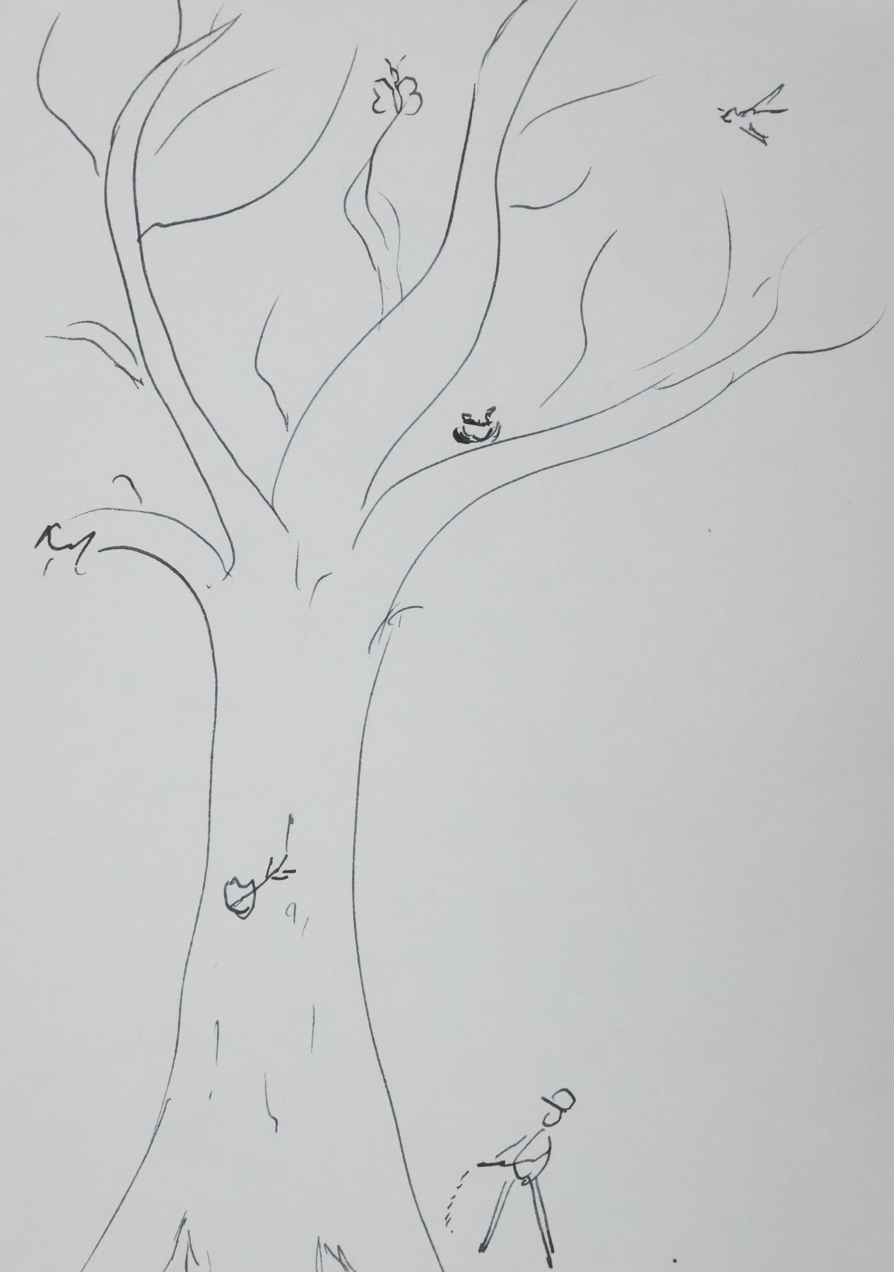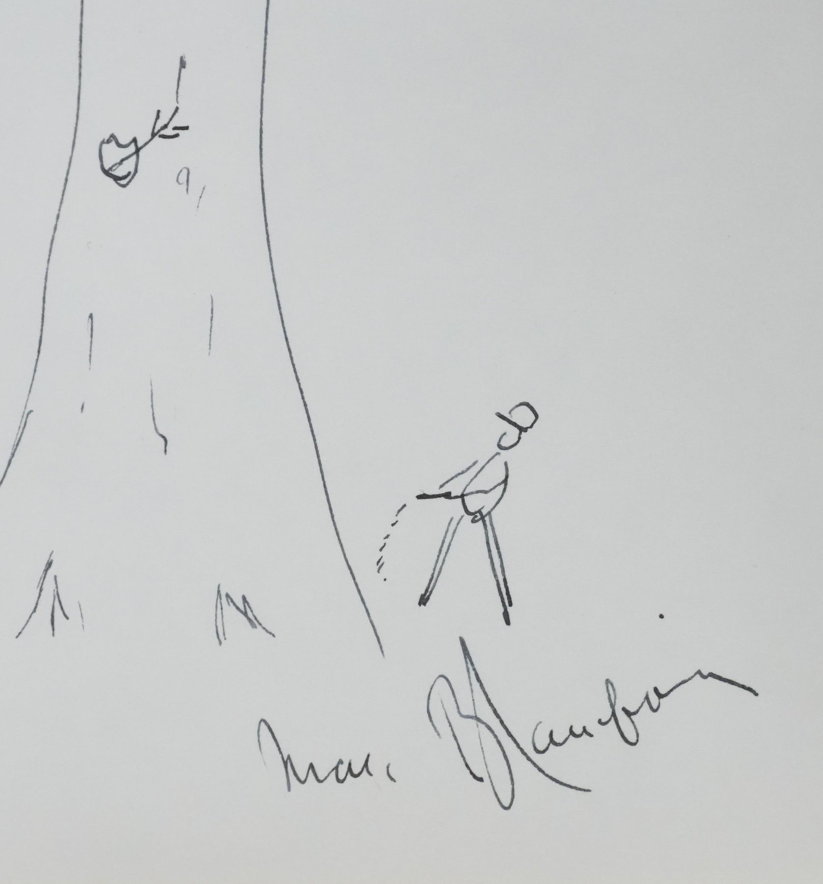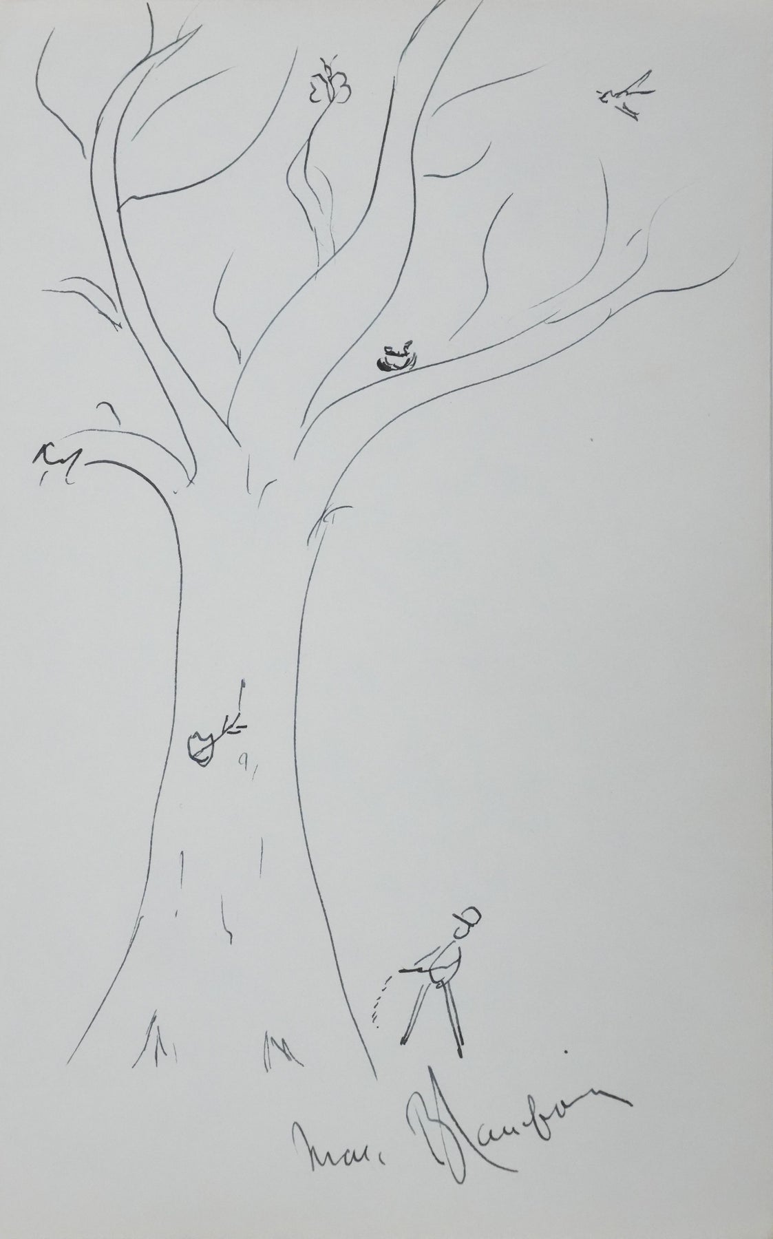 PROVENANCE : Ce dessin provient de la collection personnelle de Pierre Lhoste. Journaliste de radio, Pierre Lhoste (1913-1984) demanda aux personnalités qu’il recevait de réaliser un autographe accompagné d'un dessin d’arbre, constituant ainsi un témoignage unique de ses entretiens.