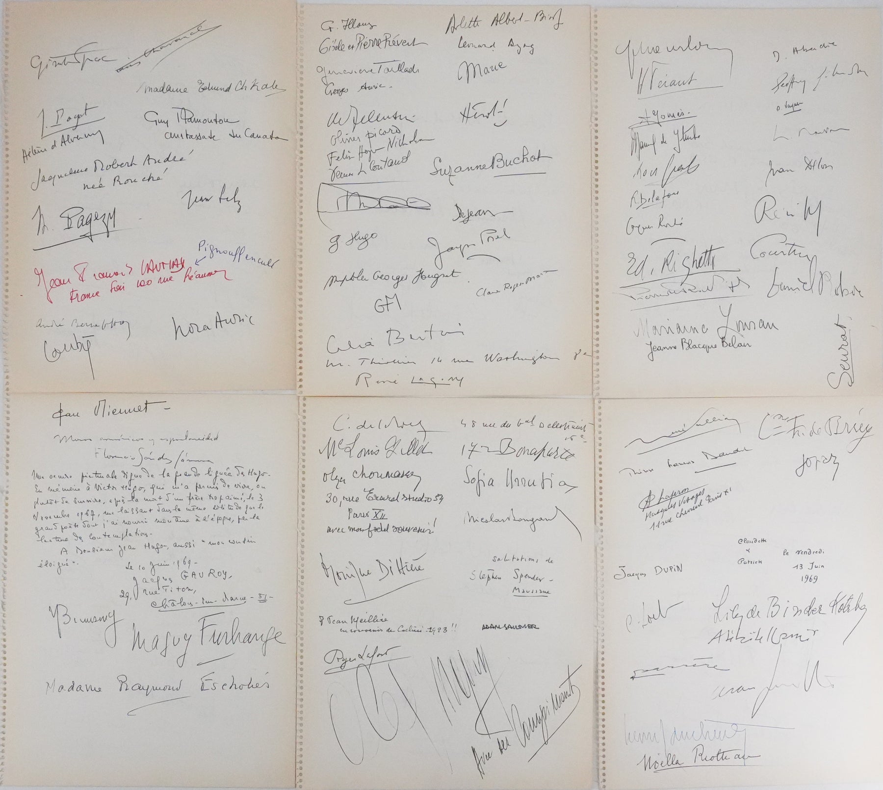 PROVENANCE : Livre d'or de la galerie Lucie Weill (Paris) en 1969. Ensemble d'autographes laissés lors d'une exposition de Jean Hugo.