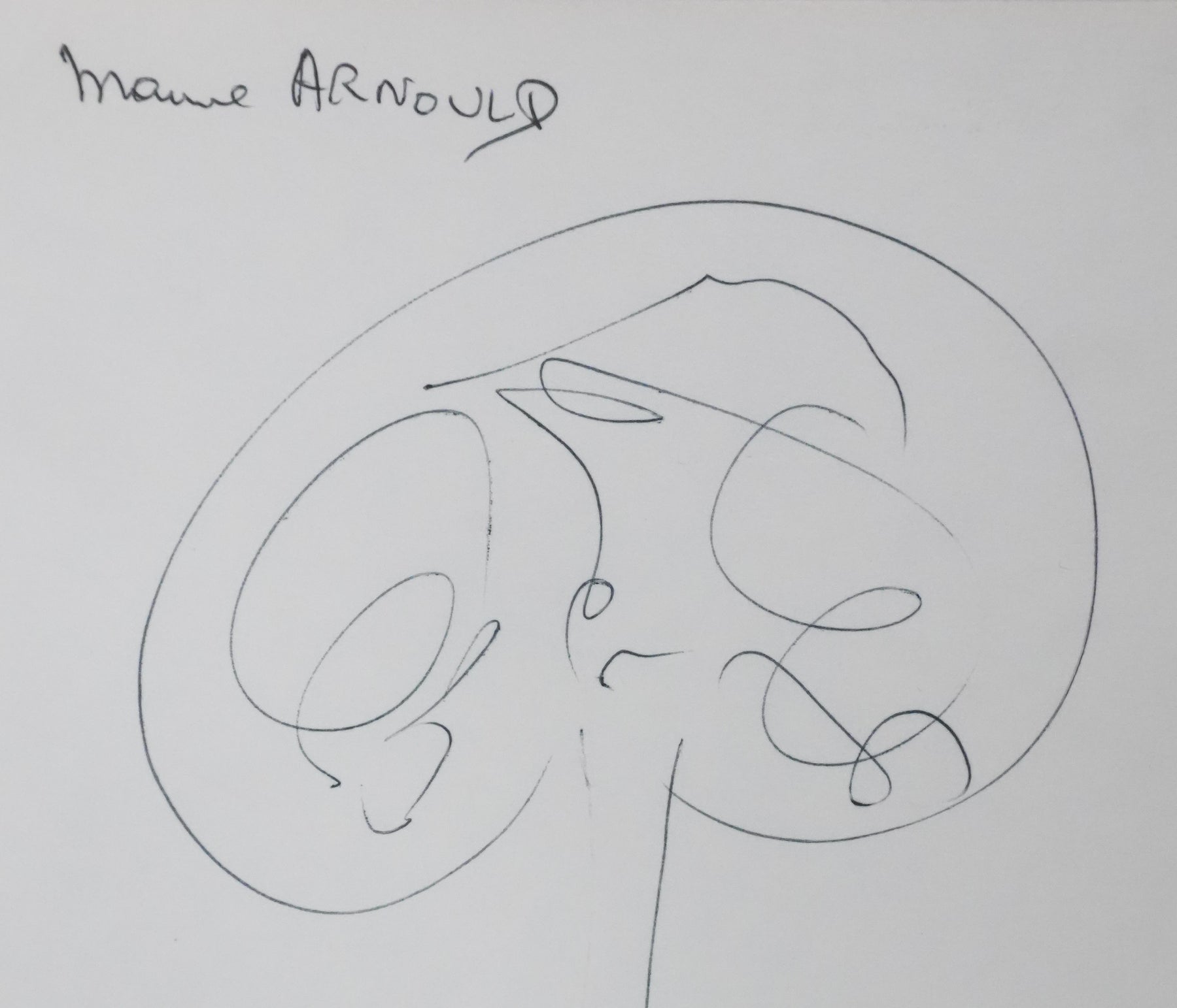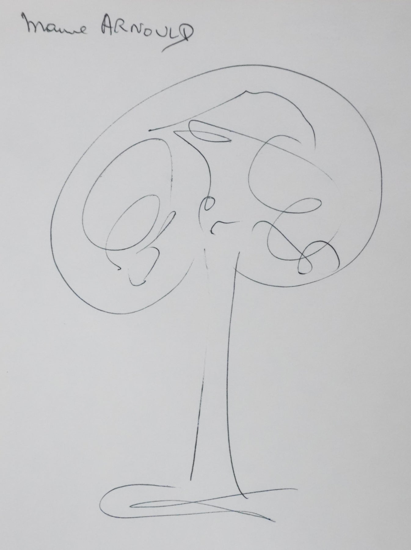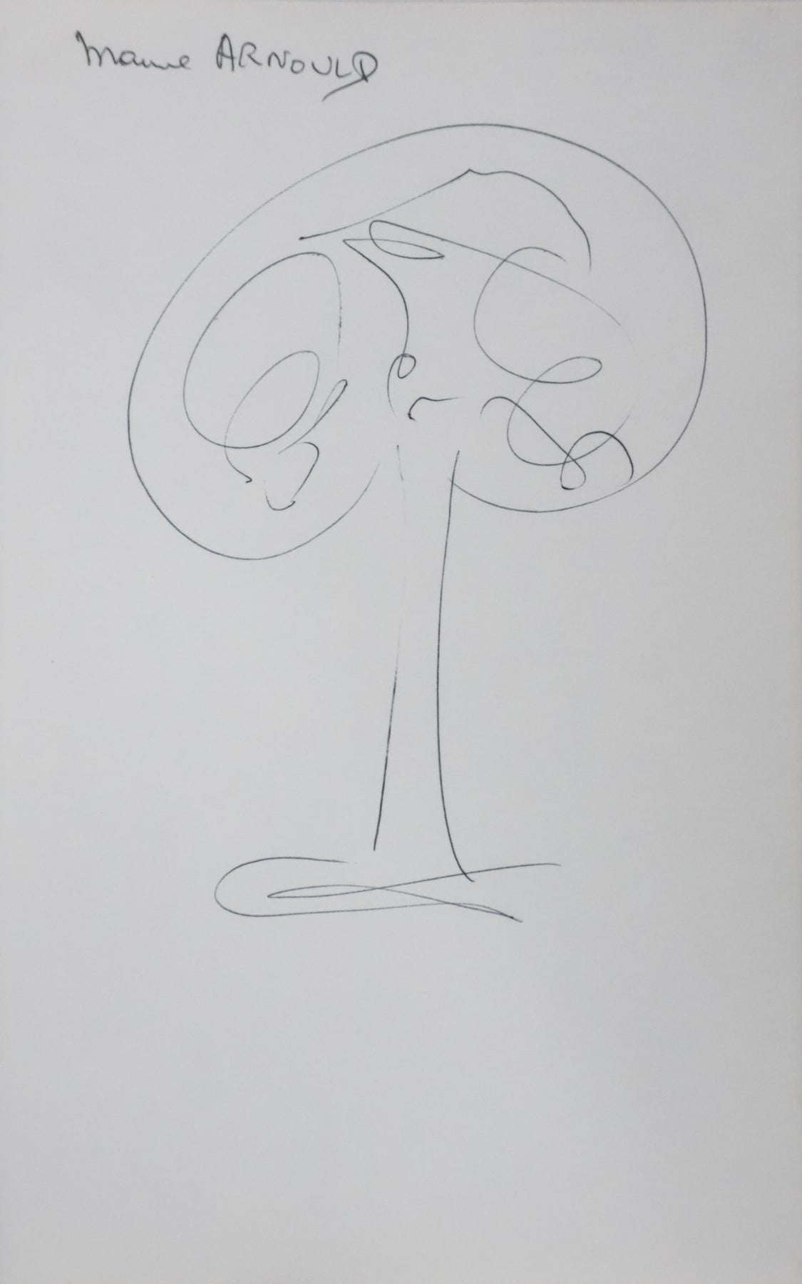 Marcel ARNOULD : Silhouette d'arbre, Autographe et dessin original signé