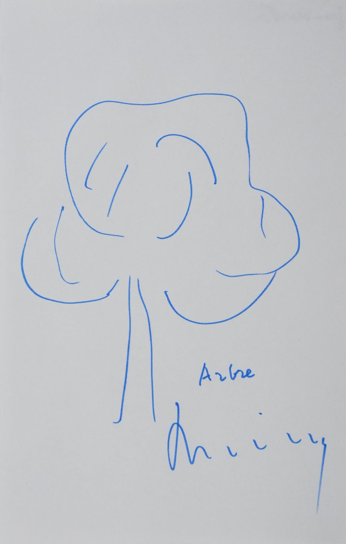 PROVENANCE : Ce dessin provient de la collection personnelle de Pierre Lhoste. Journaliste de radio, Pierre Lhoste (1913-1984) demanda aux personnalités qu’il recevait de réaliser un autographe accompagné d'un dessin d’arbre, constituant ainsi un témoignage unique de ses entretiens.