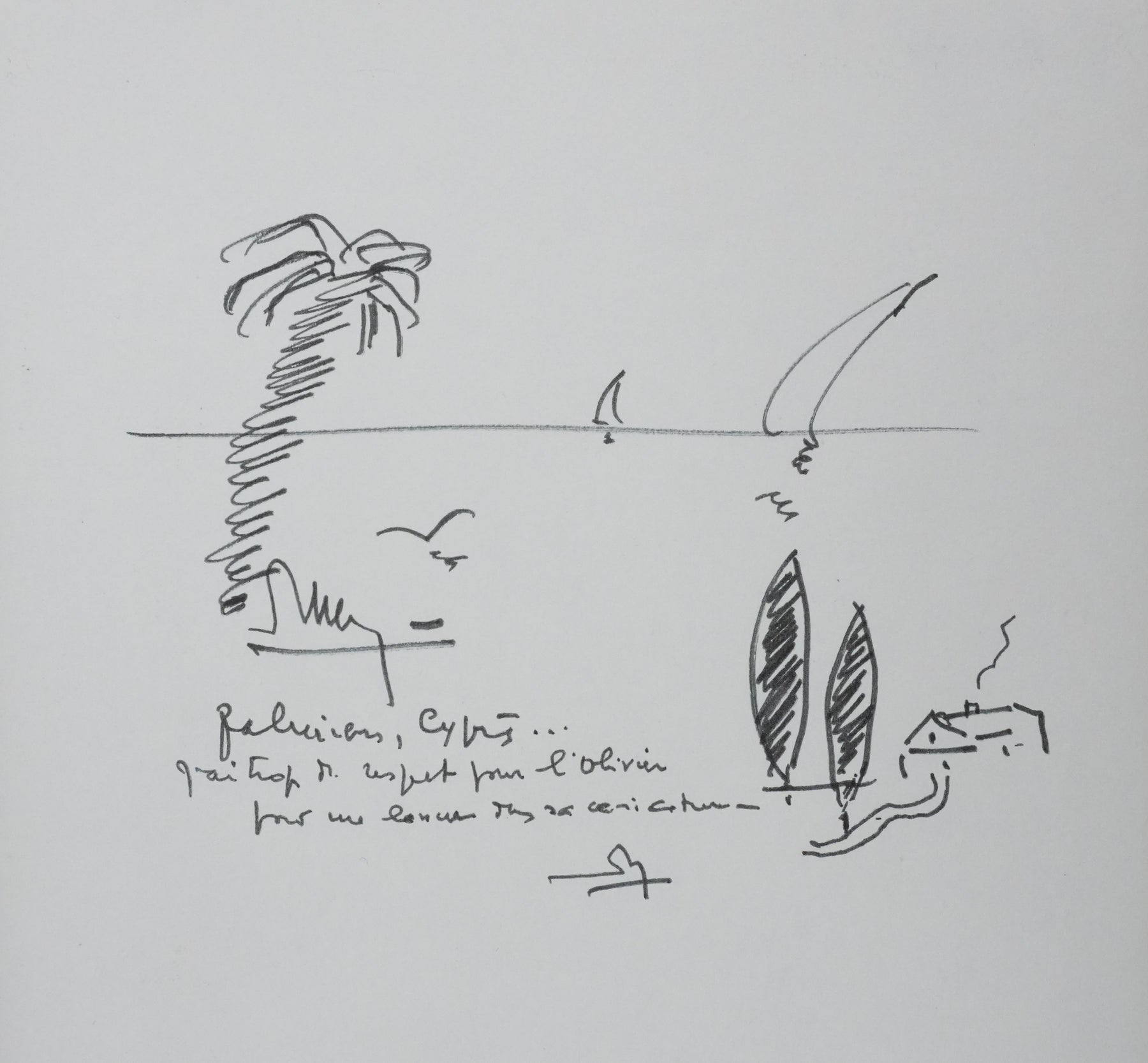 PROVENANCE : Ce dessin provient de la collection personnelle de Pierre Lhoste. Journaliste de radio, Pierre Lhoste (1913-1984) demanda aux personnalités qu’il recevait de réaliser un autographe accompagné d'un dessin d’arbre, constituant ainsi un témoignage unique de ses entretiens.