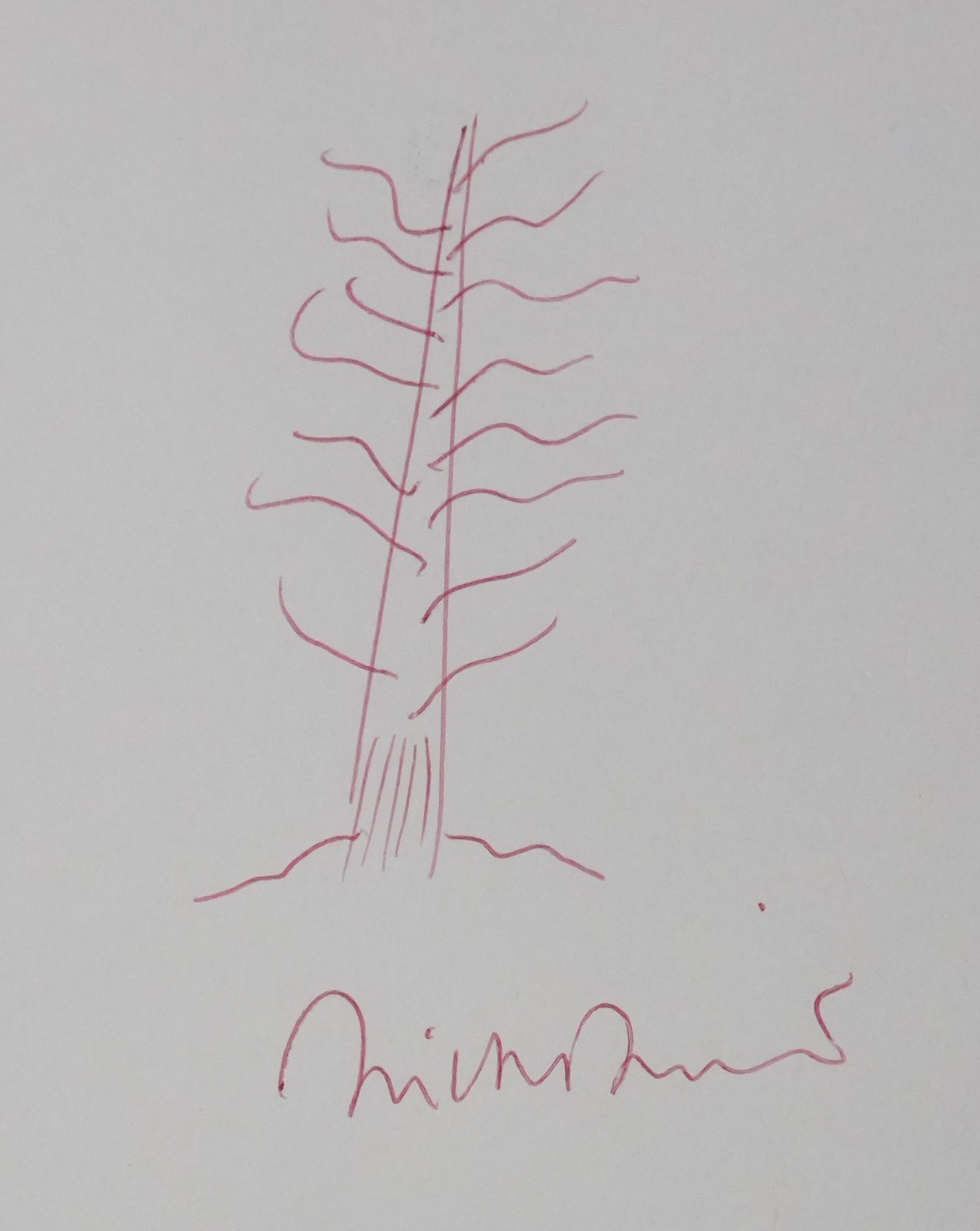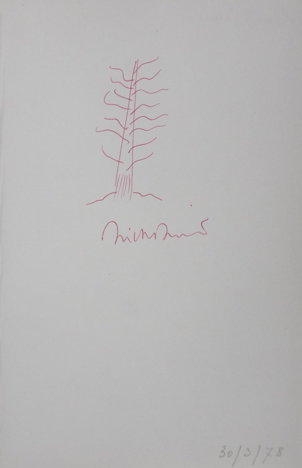 PROVENANCE : Ce dessin provient de la collection personnelle de Pierre Lhoste. Journaliste de radio, Pierre Lhoste (1913-1984) demanda aux personnalités qu’il recevait de réaliser un autographe accompagné d'un dessin d’arbre, constituant ainsi un témoignage unique de ses entretiens.