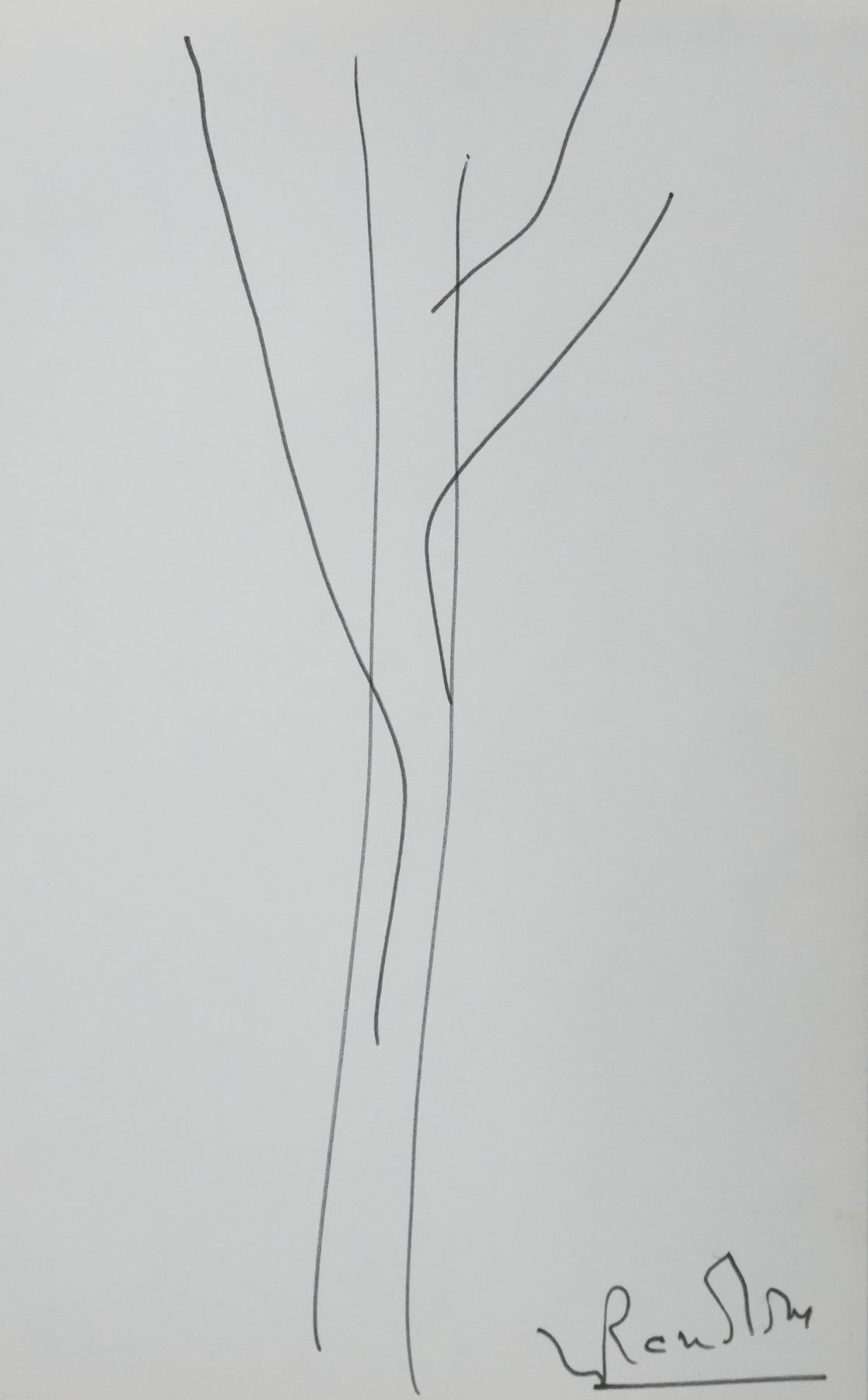 PROVENANCE : Ce dessin provient de la collection personnelle de Pierre Lhoste. Journaliste de radio, Pierre Lhoste (1913-1984) demanda aux personnalités qu’il recevait de réaliser un autographe accompagné d'un dessin d’arbre, constituant ainsi un témoignage unique de ses entretiens.