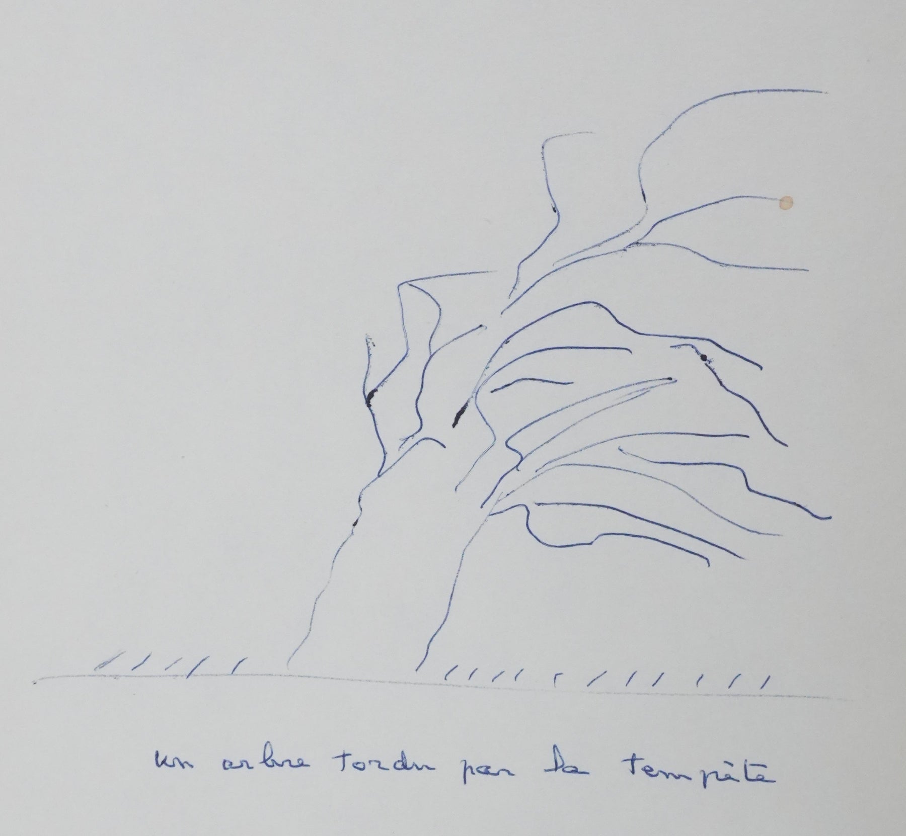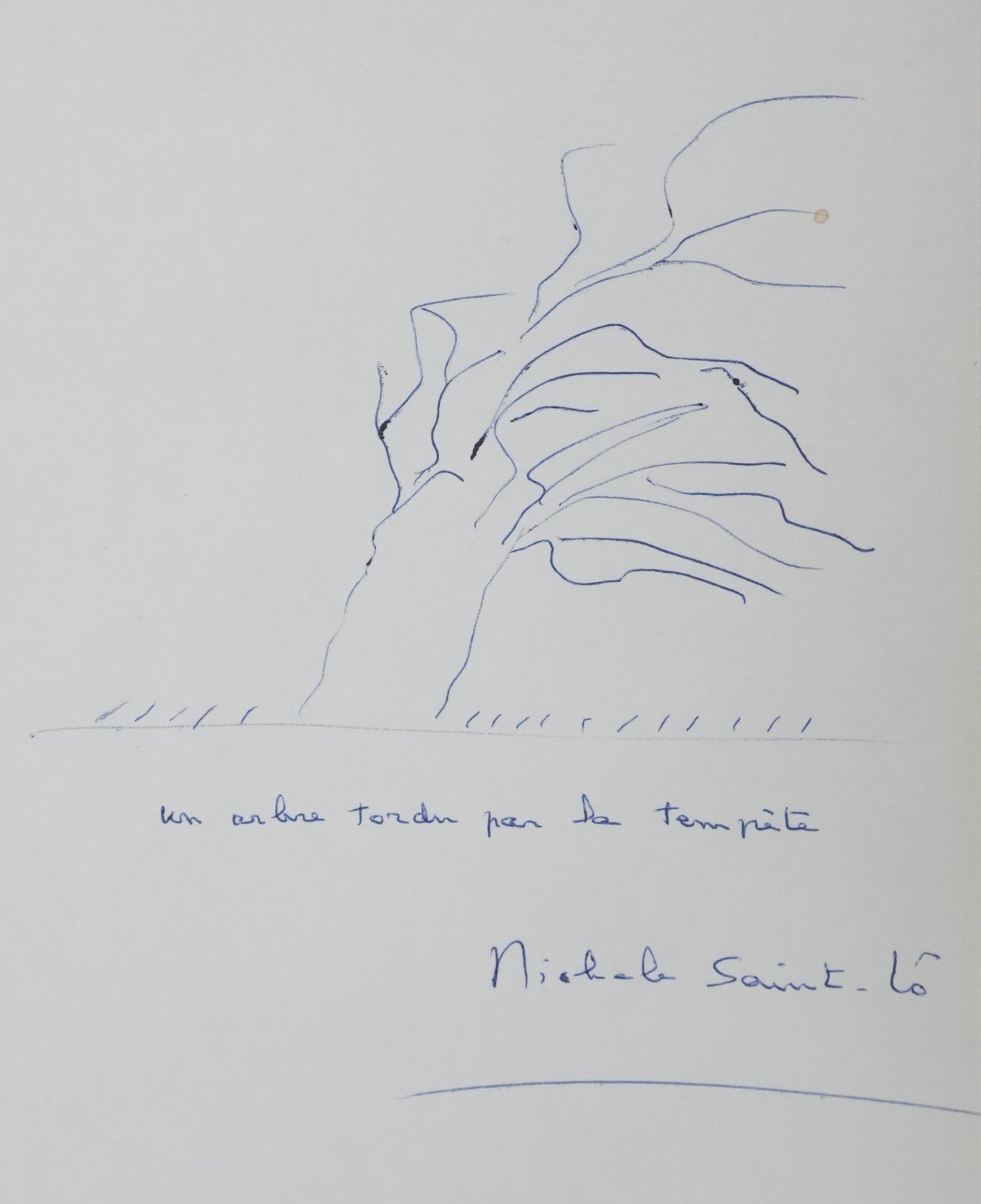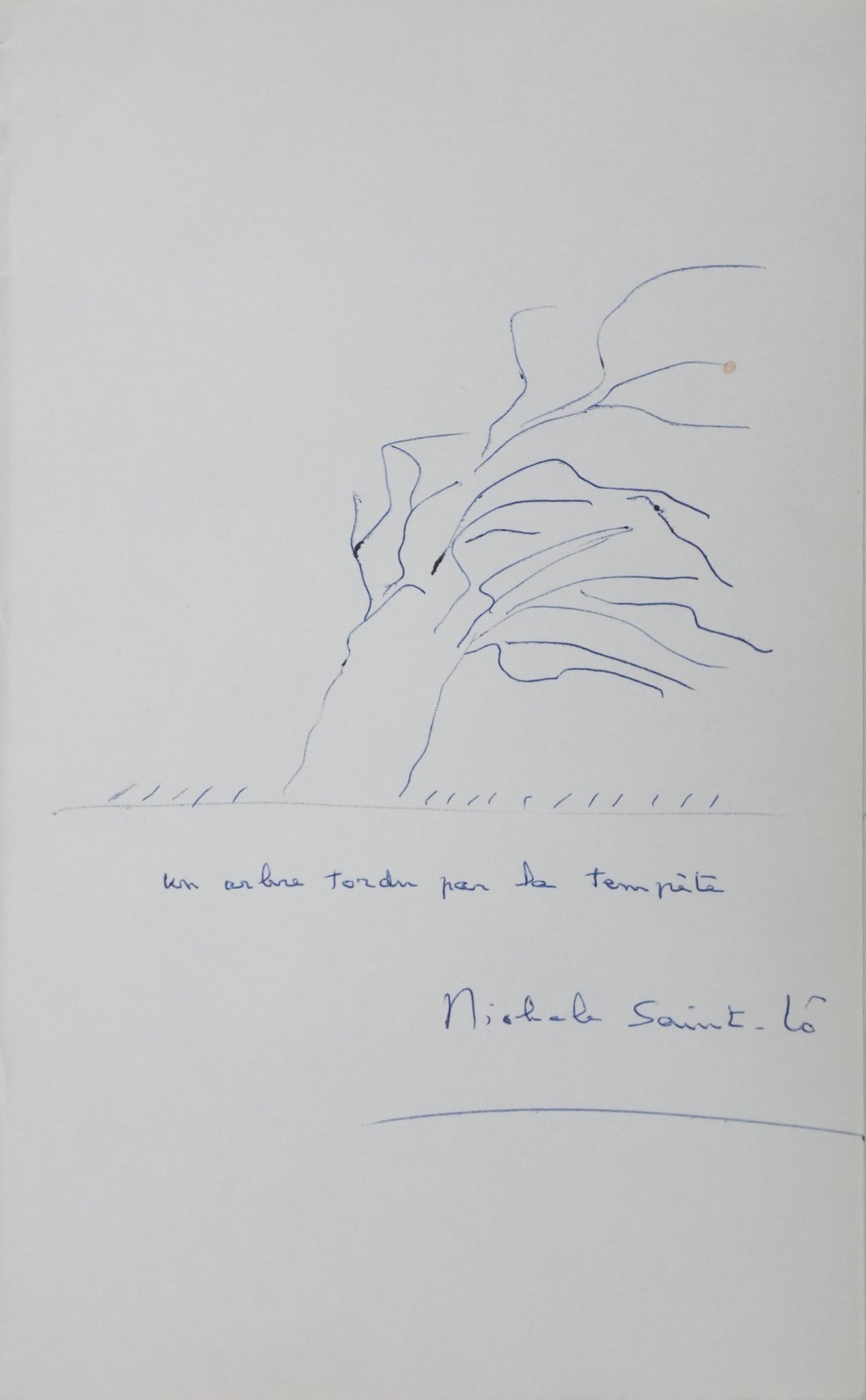 Michèle SAINT LO : Un arbre tordu par la tempête, Autographe et dessin original signé