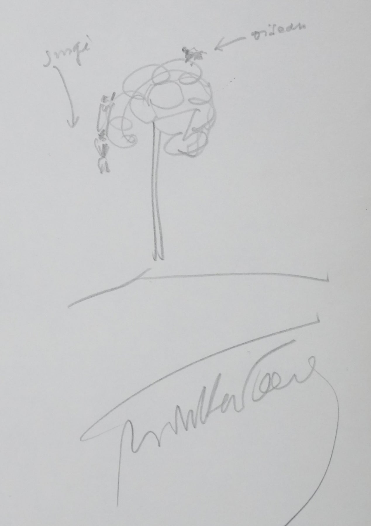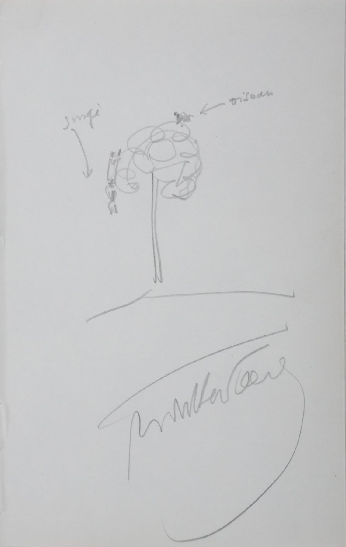 PROVENANCE : Ce dessin provient de la collection personnelle de Pierre Lhoste. Journaliste de radio, Pierre Lhoste (1913-1984) demanda aux personnalités qu’il recevait de réaliser un autographe accompagné d'un dessin d’arbre, constituant ainsi un témoignage unique de ses entretiens.