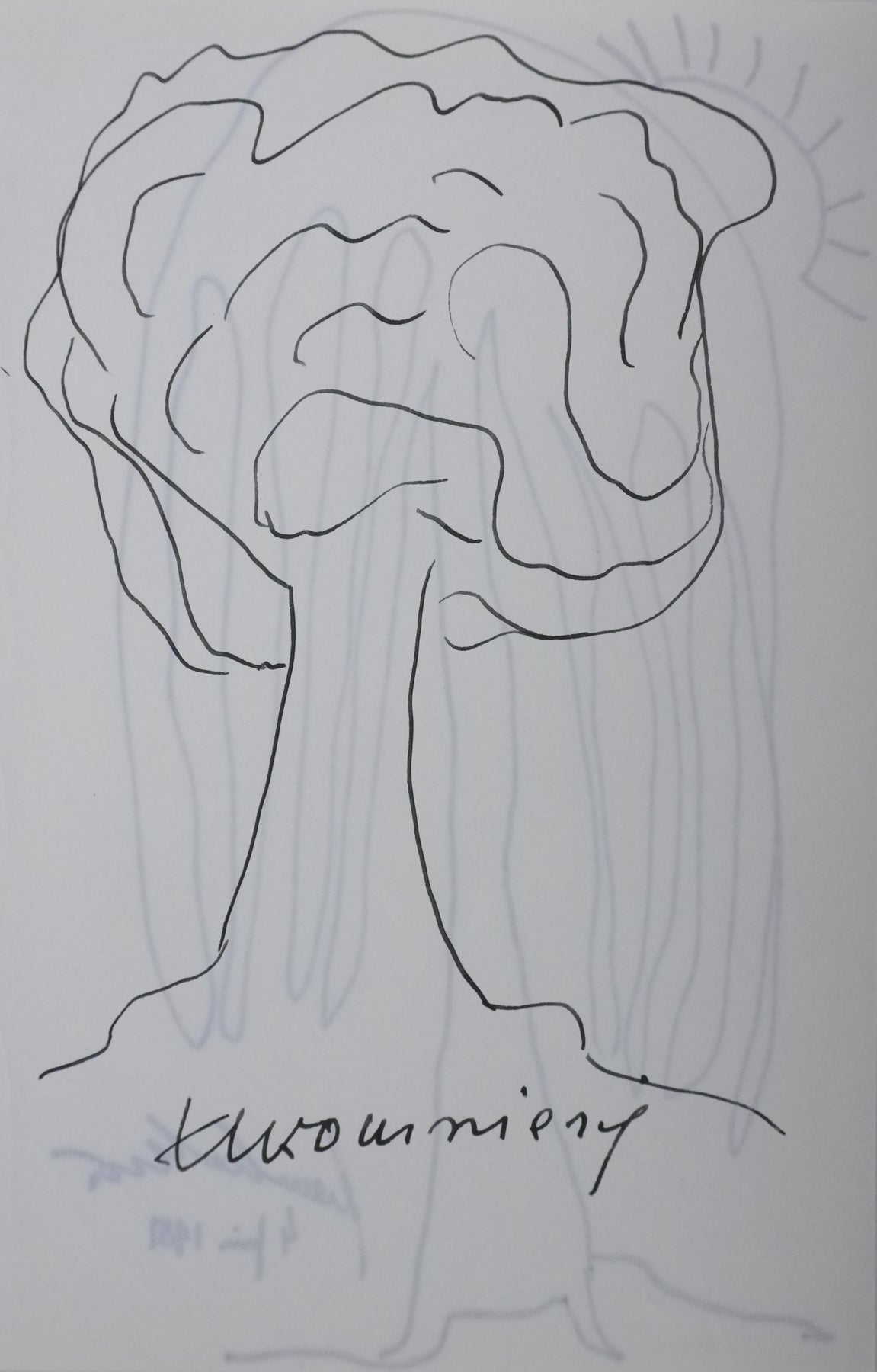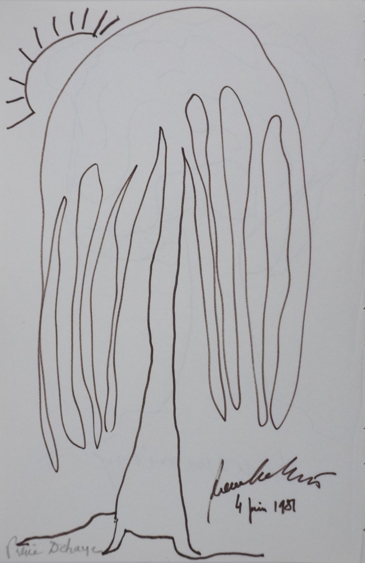 PROVENANCE : Ce dessin provient de la collection personnelle de Pierre Lhoste. Journaliste de radio, Pierre Lhoste (1913-1984) demanda aux personnalités qu’il recevait de réaliser un autographe accompagné d'un dessin d’arbre, constituant ainsi un témoignage unique de ses entretiens.