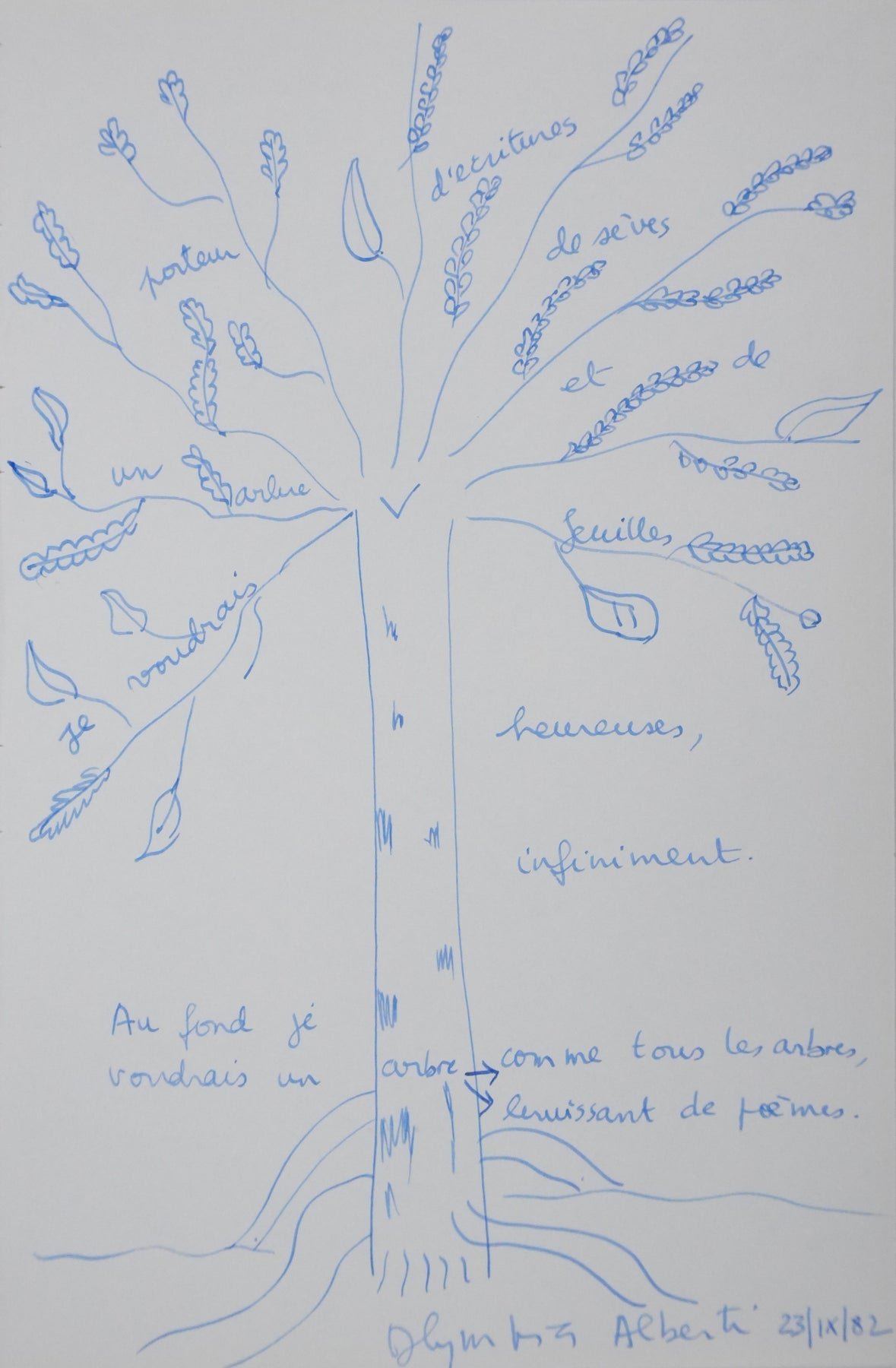 PROVENANCE : Ce dessin provient de la collection personnelle de Pierre Lhoste. Journaliste de radio, Pierre Lhoste (1913-1984) demanda aux personnalités qu’il recevait de réaliser un autographe accompagné d'un dessin d’arbre, constituant ainsi un témoignage unique de ses entretiens.